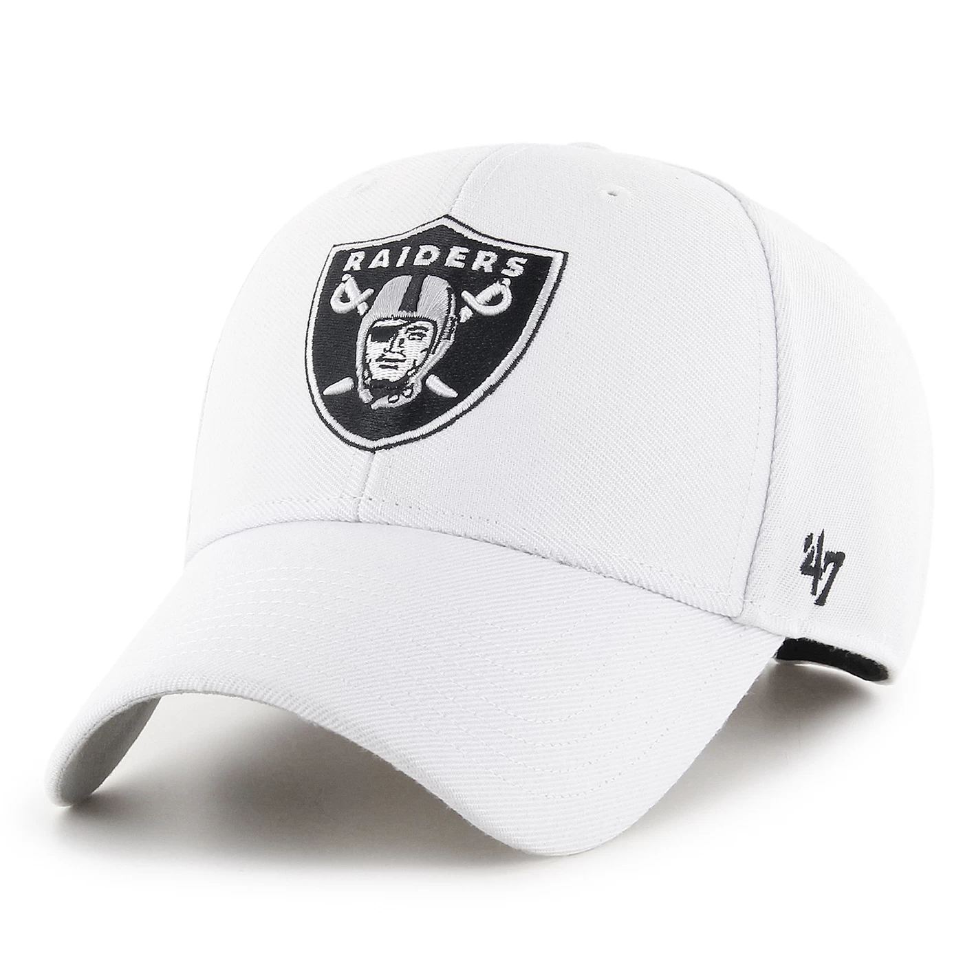 The classic style of the Raiders ’47 Logo MVP Cap will make this your go-to on game days! This cap features an embroidered Raiders’ shield logo on the front over a structured crown and team name on the adjustable back strap. 80% acrylic 20% wool.