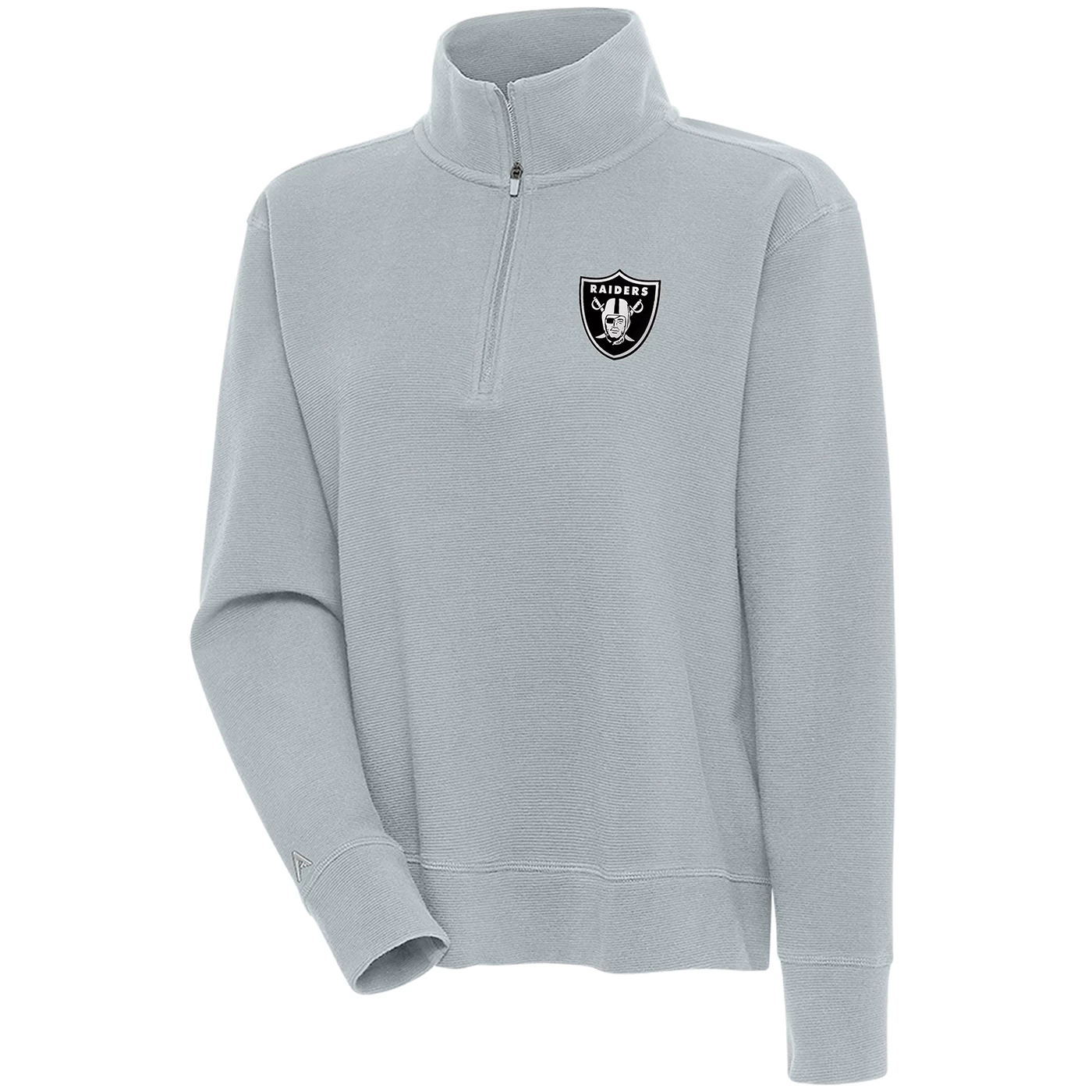 The Raiders Antigua Portal Bunker Quarter Zip is designed with ottoman double-knit fabrication that is the perfect for layering. This pullover has a stand-up collar and team shield logo at upper left chest plus a bungee toggle hem for an adjustable fit. 86% cotton 11& polyester 3% spandex.