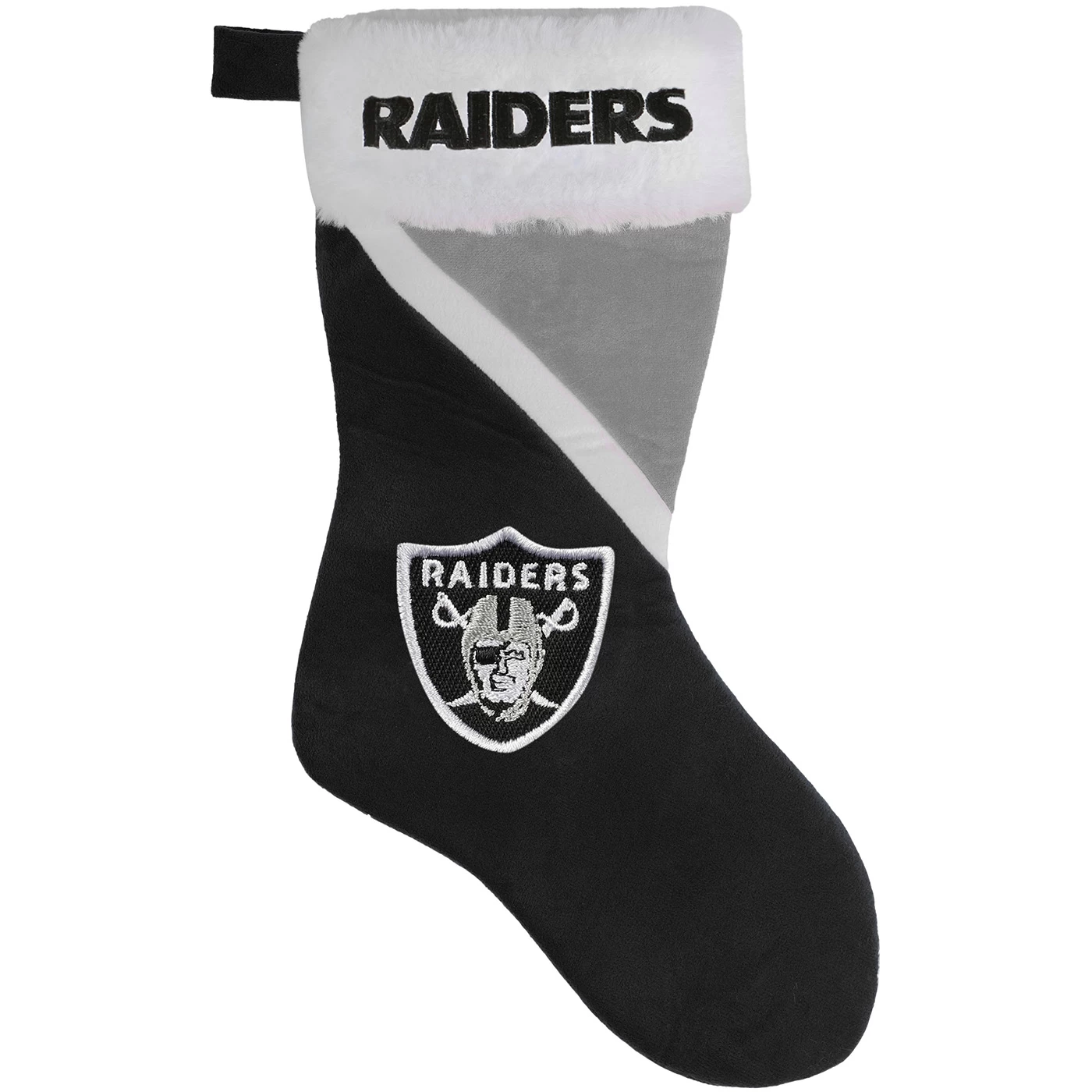Showcase your team spirit during the holiday season with the Raiders Colorblock Stocking by FOCO. This team-colored stocking features an embroidered team shield logo with a team wordmark logo displayed across the brim. Includes a plush hanger on top so it can be hung by the chimney with care. Measures approximately 17″ tall. 100% polyester.