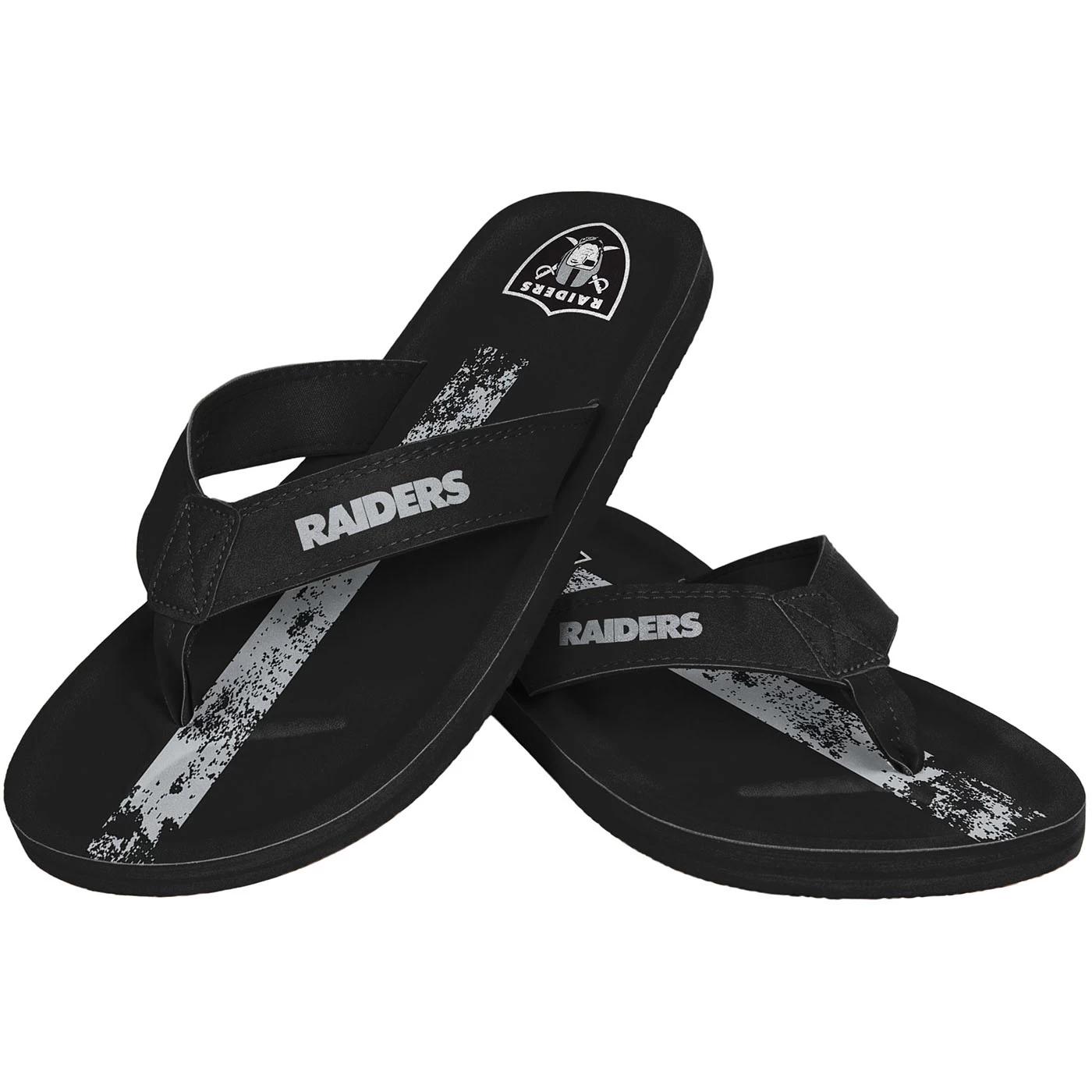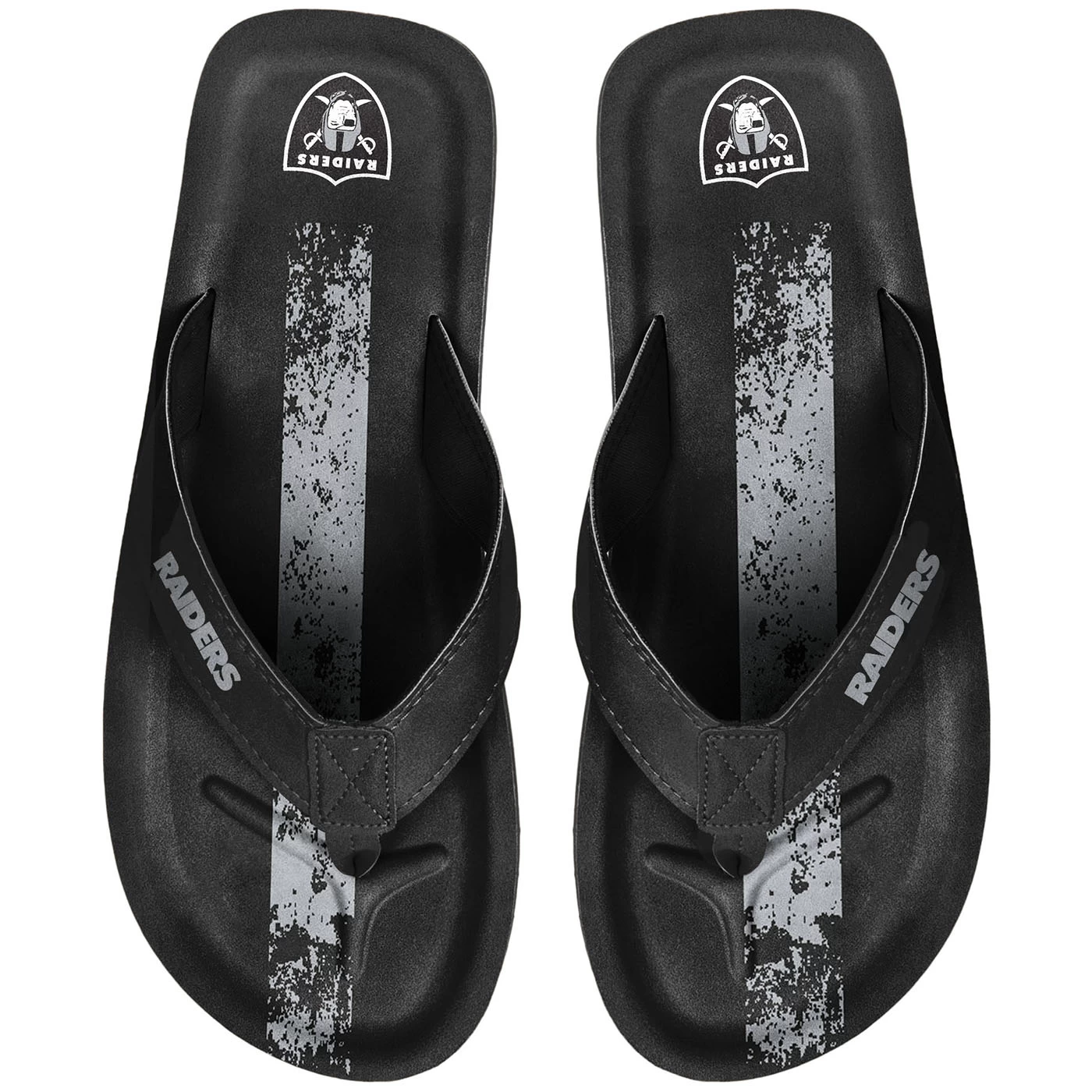 Step out in pride with the Raiders Team Stripe Canvas Contour Slides by FOCO. These flip flops have a contoured canvas footbed with distressed team-colored stripes and a team shield logo at the heel bed. Additional details include a team wordmark logo across the straps.
