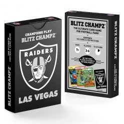 A game for the whole family! The Las Vegas Raiders Blitz Champz Card Game is an easy-to-learn game night addition that combines simple math skills with the fun and strategy behind football. Consists of 100 vibrantly illustrated cards that feature both male and female athletes. For football fans ages 7 and up; can be played with 2-6 people at a time.