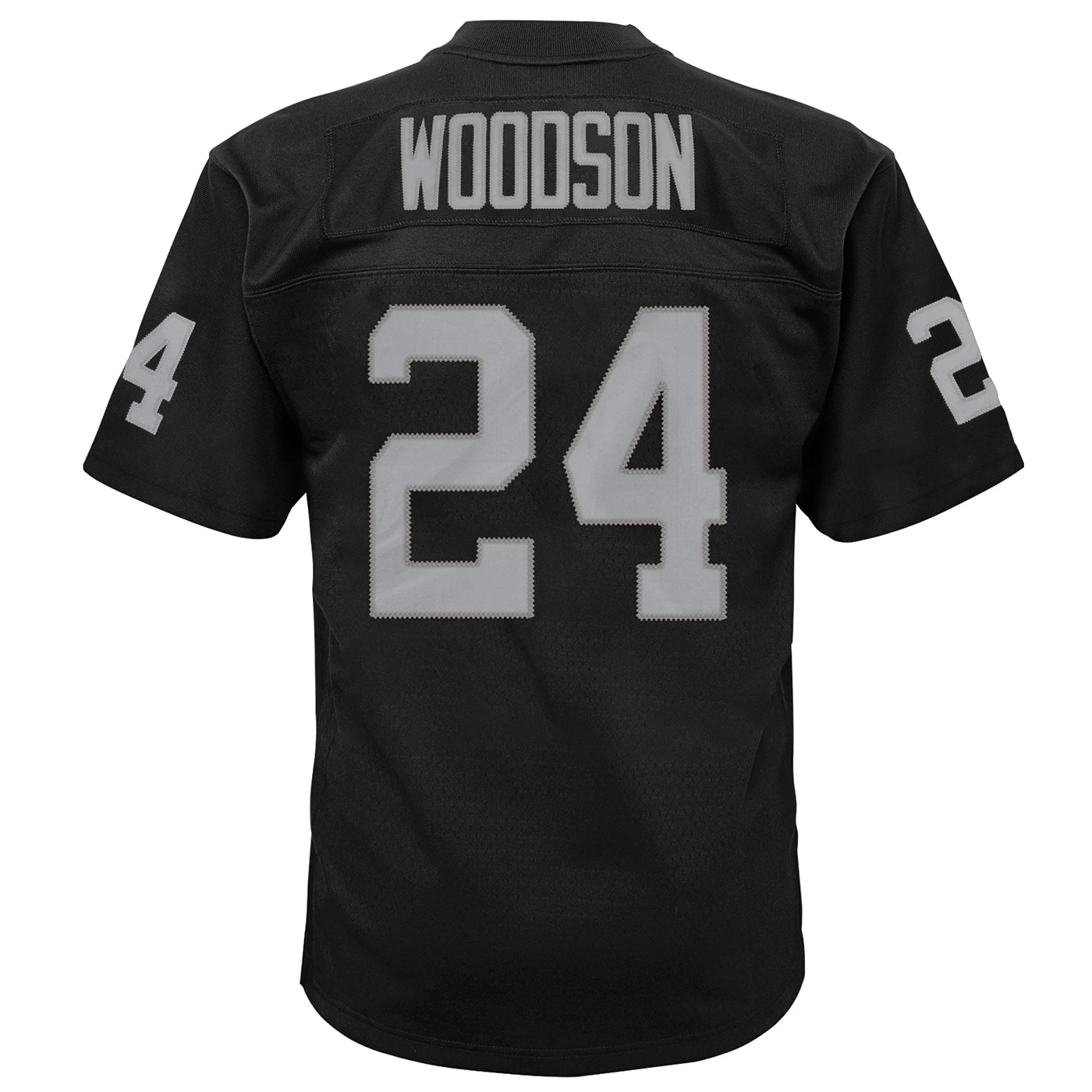 Celebrate a Raiders legend with the Mitchell & Ness Charles Woodson 1998 Youth Legacy Jersey. This replica jersey is made of polyester mesh with a droptail hem side slits and a ribbed knit v-neckline. It is embellished with twill name and numbers at the chest back and sleeves. Embroidered felt name/year ID patch and Mitchell & Ness jock tag on lower left front. 100% polyester.