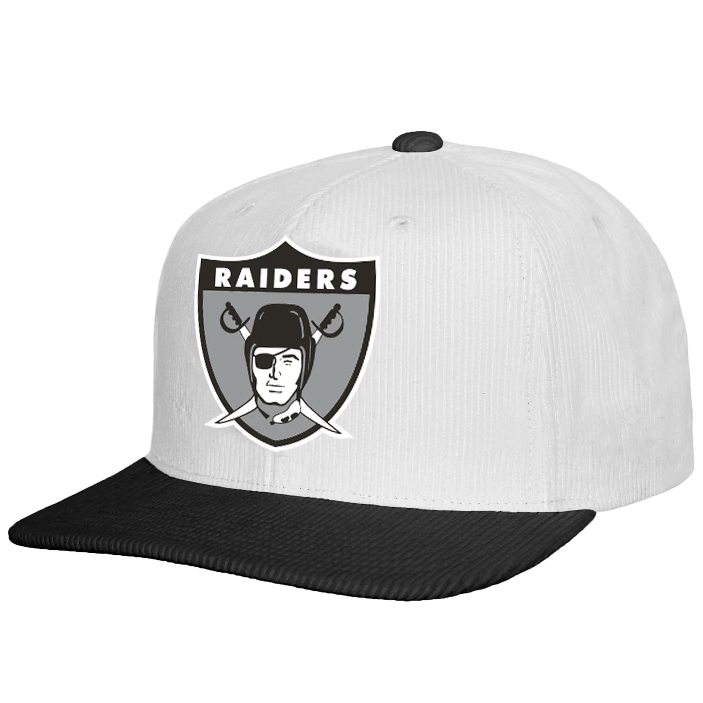 Show off your vintage style! The Raiders Mitchell & Ness Two Tone Corduroy Snapback Cap is designed with a reinforced squared crown and features an embroidered team 1963 logo across the front panels and team wordmark logo at the right-wear side. Plastic snapback strap at the rear and a green undervisor. 100% cotton.
