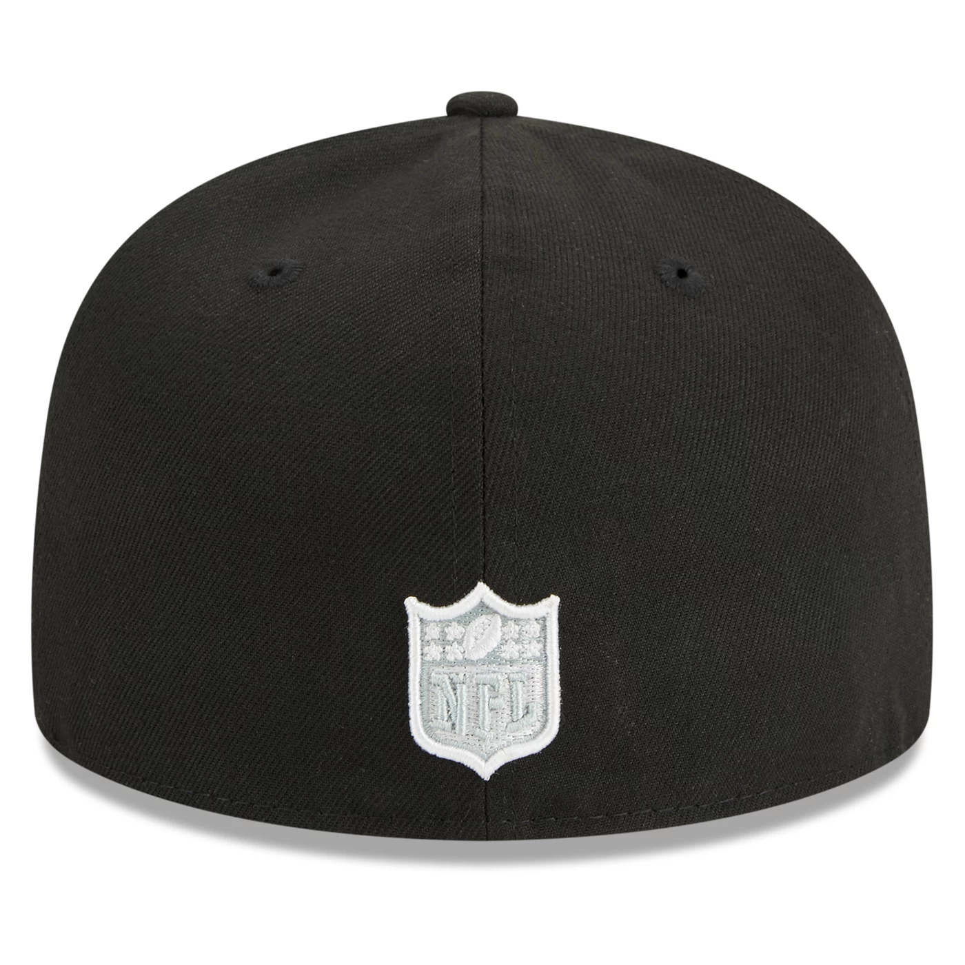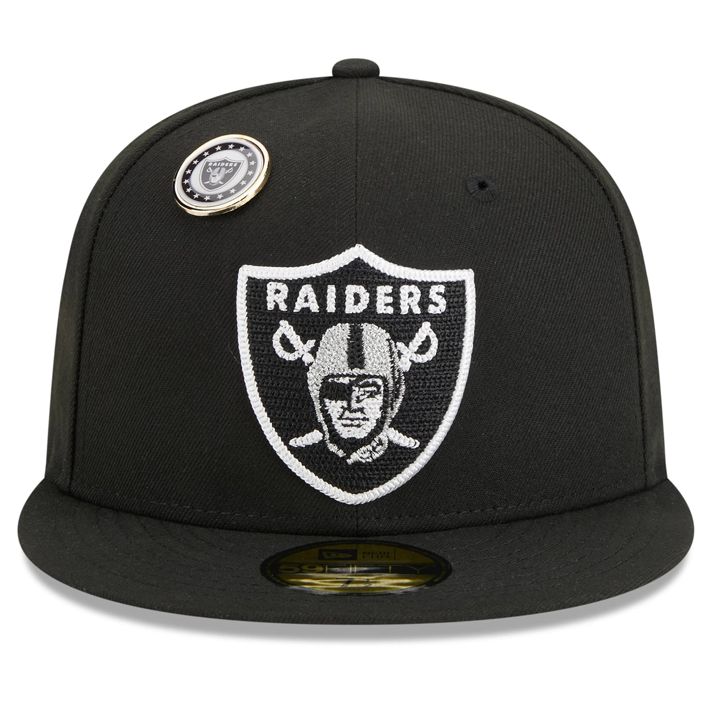 Elevate a staple cap! The Raiders New Era 59Fifty Metal Pin Cap is a fitted cap designed with team shield logo chainstitch embroidery across the front panels and an official league logo at the rear. Complete with a contrast-colored gray undervisor and metal poker chip inspired team shield logo pin on the crown so everyone knows who you root for. 100% polyester.