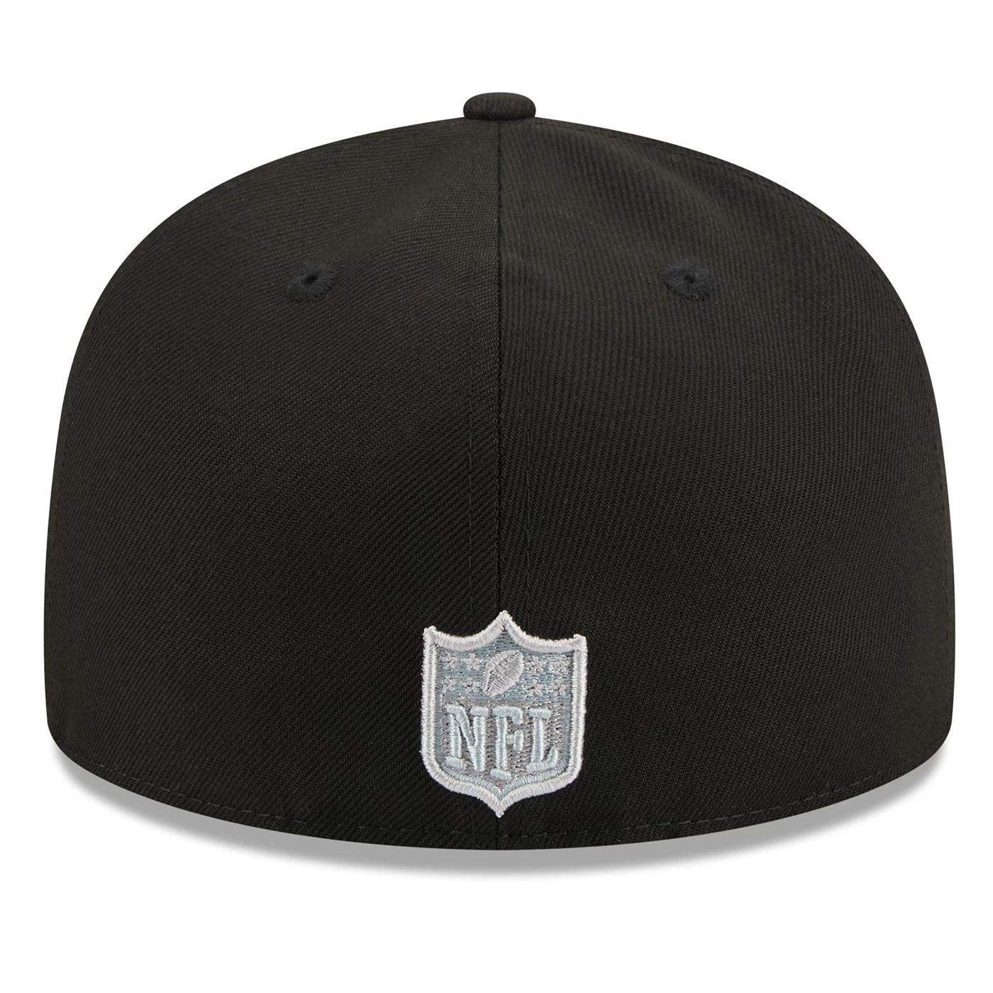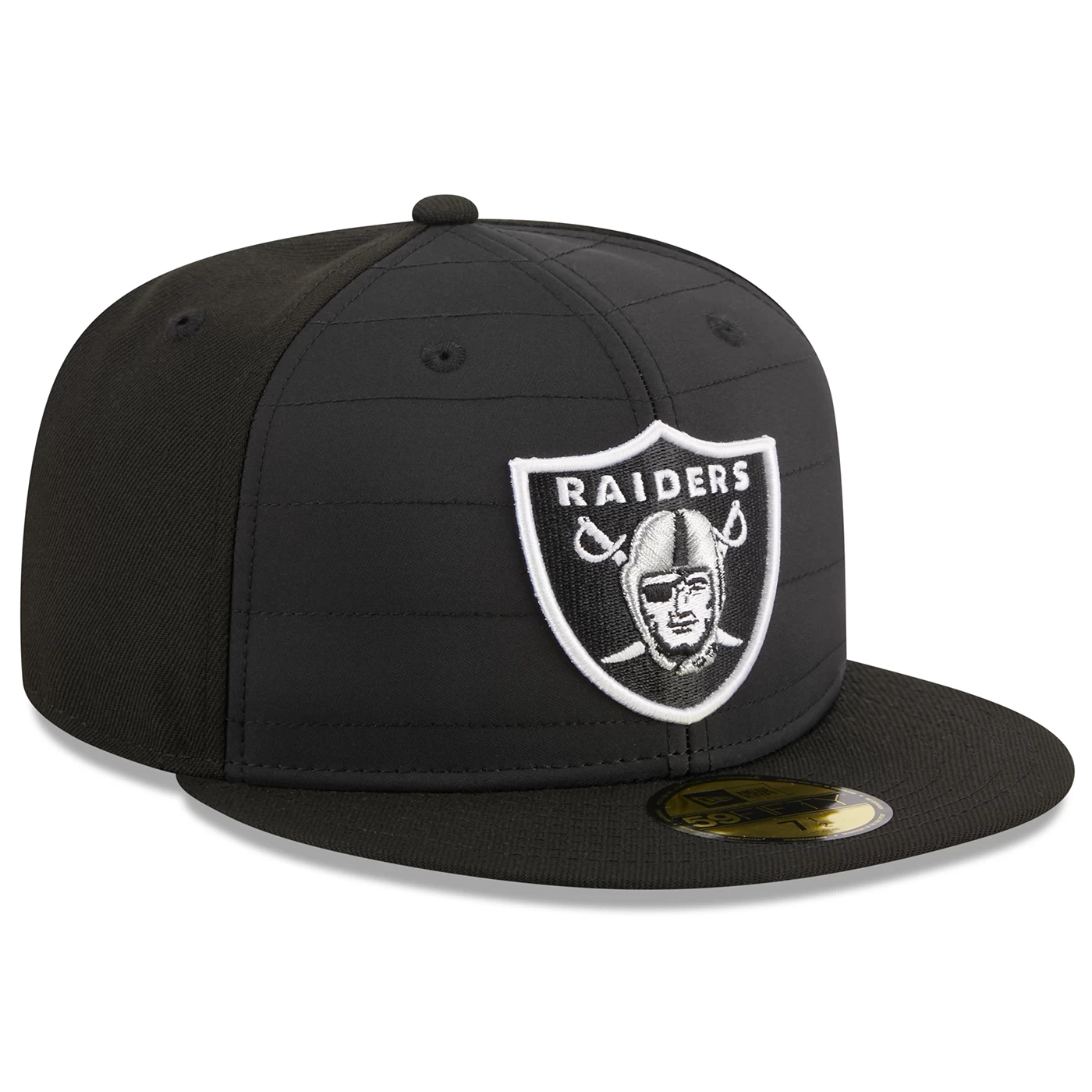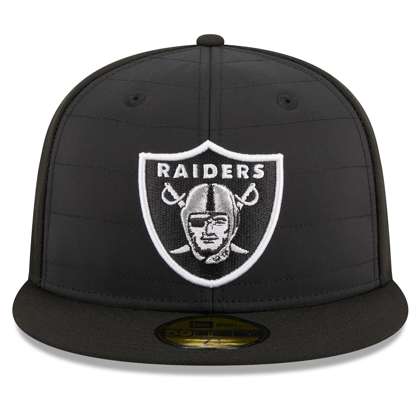 The Raiders New Era 59Fifty Quilted Cap is designed with quilted fabrication across the front panels to provide increased insulation and comfort. This fitted cap features a raised team shield logo embroidered across the front panels and a gray undervisor to complete the look.