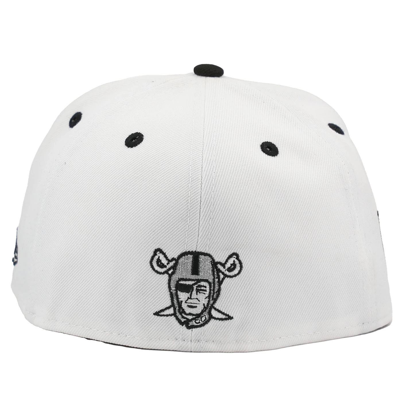 Rep a team exclusive! Designed just for fans the New Era 59Fifty Raiders 2T Script Cap features raised “Raiders” script embroidery across the front panels. This two-tone fitted cap features an additional team shield logo at the right-wear side and pirate logo at the rear. 100% polyester.