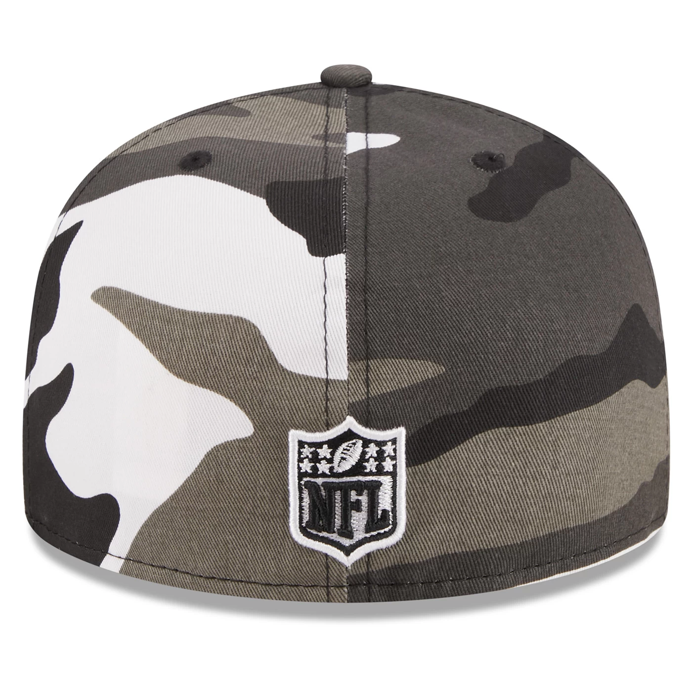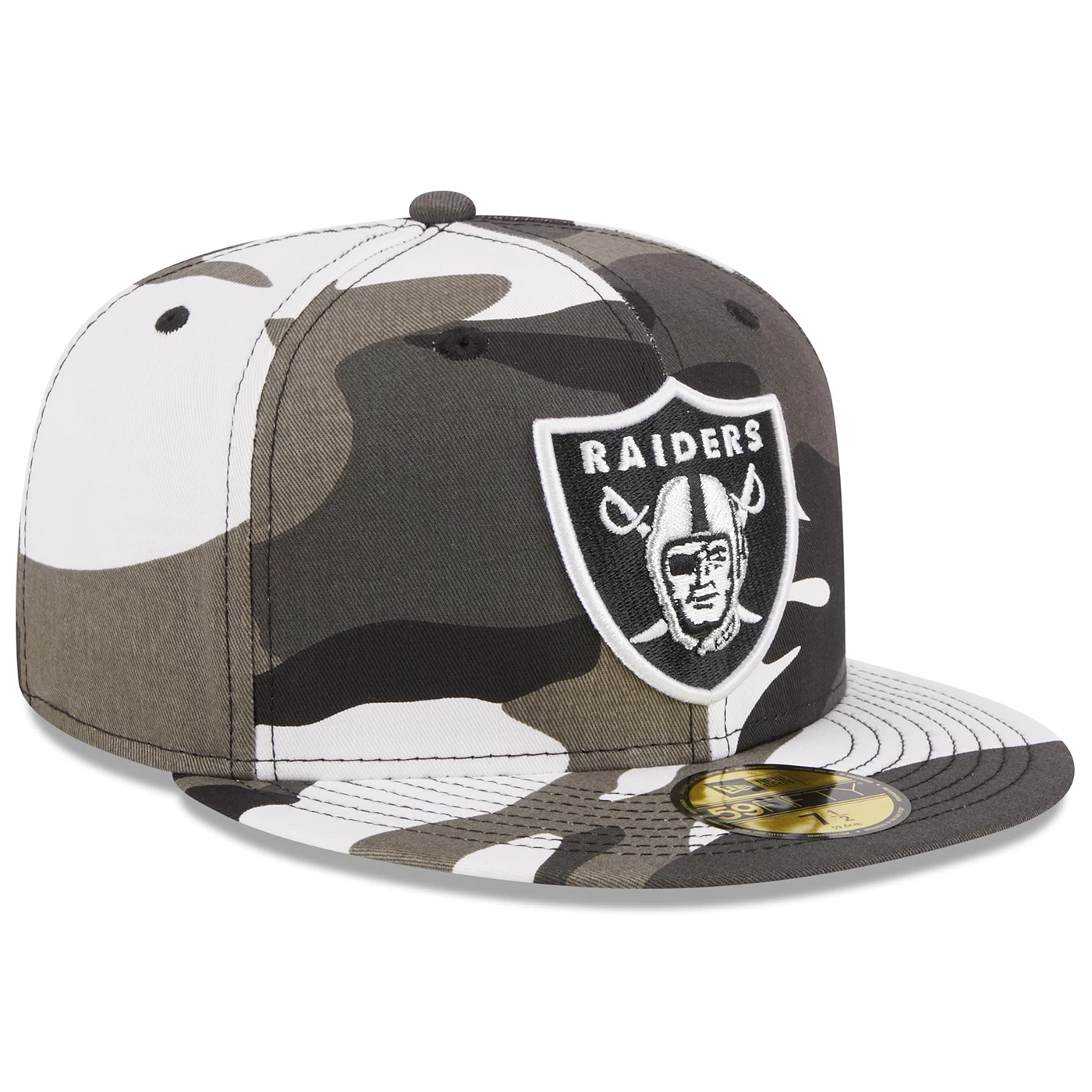 The Raiders New Era 59Fifty White Camo Cap is designed with all over team-colored camo print and a solid gray undervisor. This fitted cap features an embroidered team shield logo across the front panels. 100% polyester.