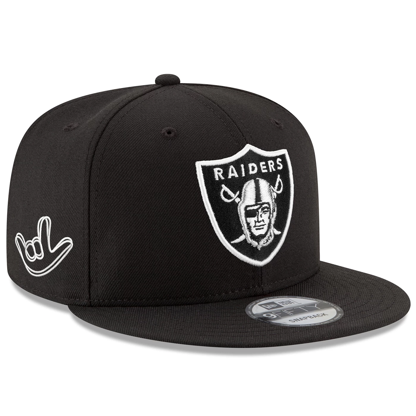 Embrace unity and connection! The Raiders New Era 9Fifty ASL Hand Cap is designed with an American Sign Language LoveSign at the right-wear panel to express love for your favorite team. This snapback cap also features an embroidered team shield logo across the front panels. 100% polyester.
