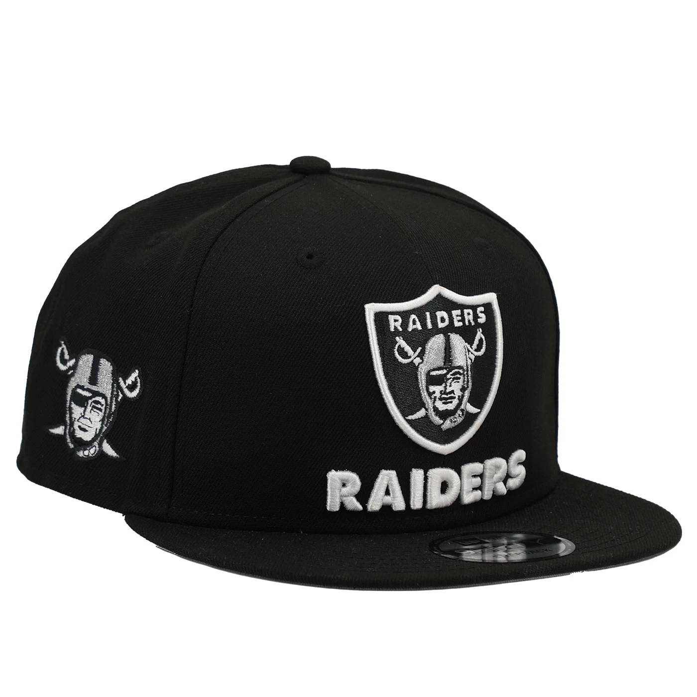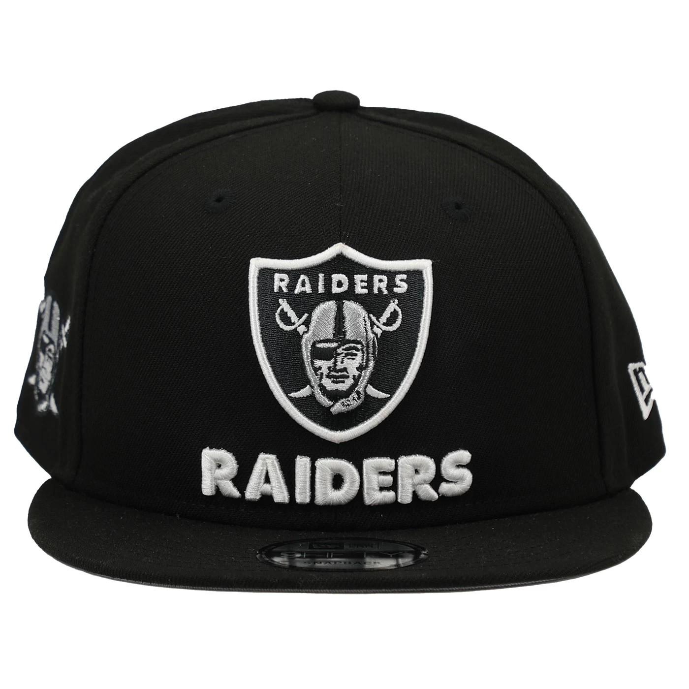 Rep a team exclusive! Designed just for fans the New Era 9Fifty Raiders Logo Block Cap features raised team shield and wordmark logo embroidery across the front panels. This snapback cap features an additional pirate logo at the right-wear side. 100% polyester.