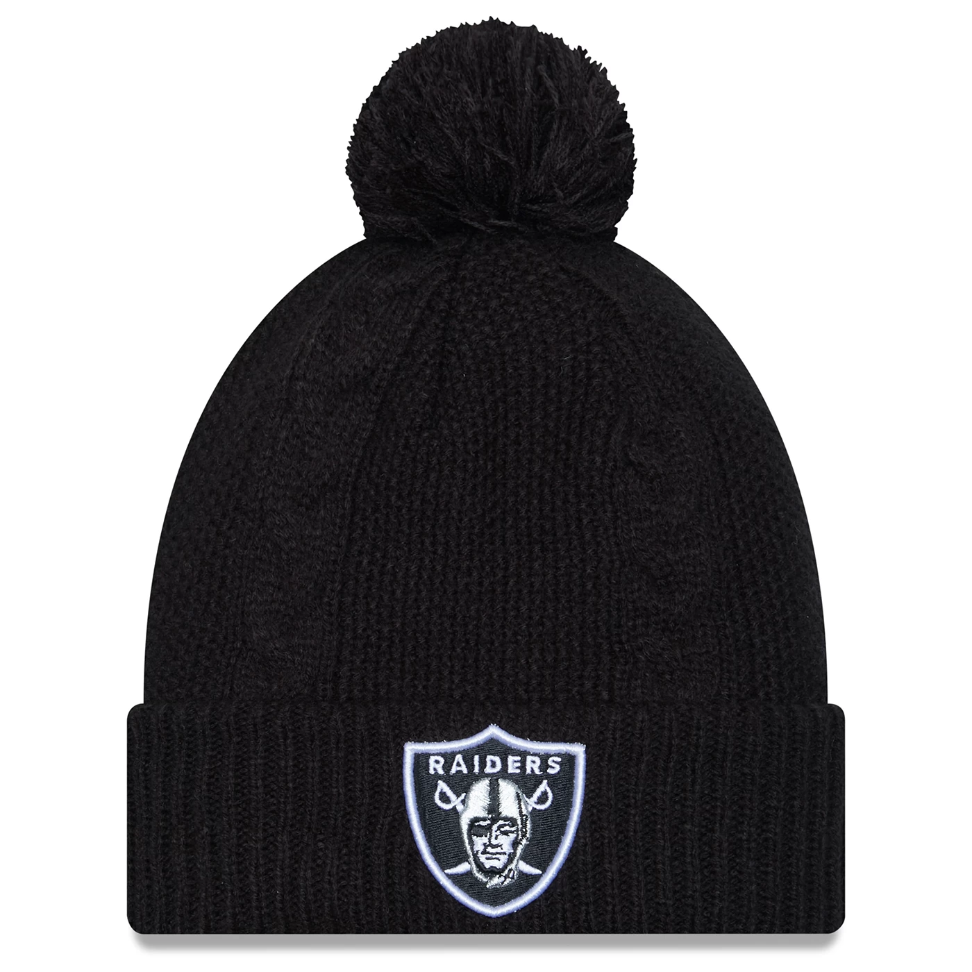 The Raiders New Era Women’s Cabled Cuff Knit features team shield logo embroidery at the front cuff. 100% acrylic.