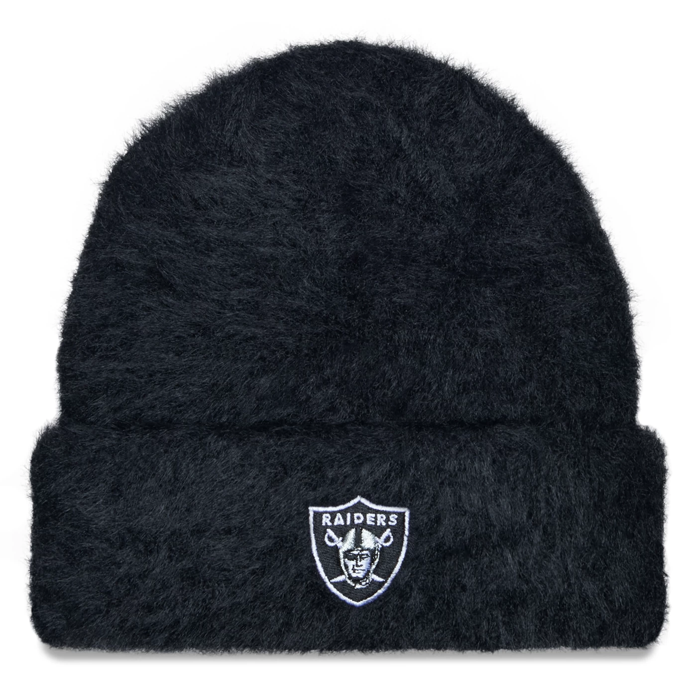 The Raiders New Era Women’s Fuzzy Knit Cap is designed with fuzzy yarn fabrication that is soft to the touch. Features small team shield logo embroidery at the front cuff.