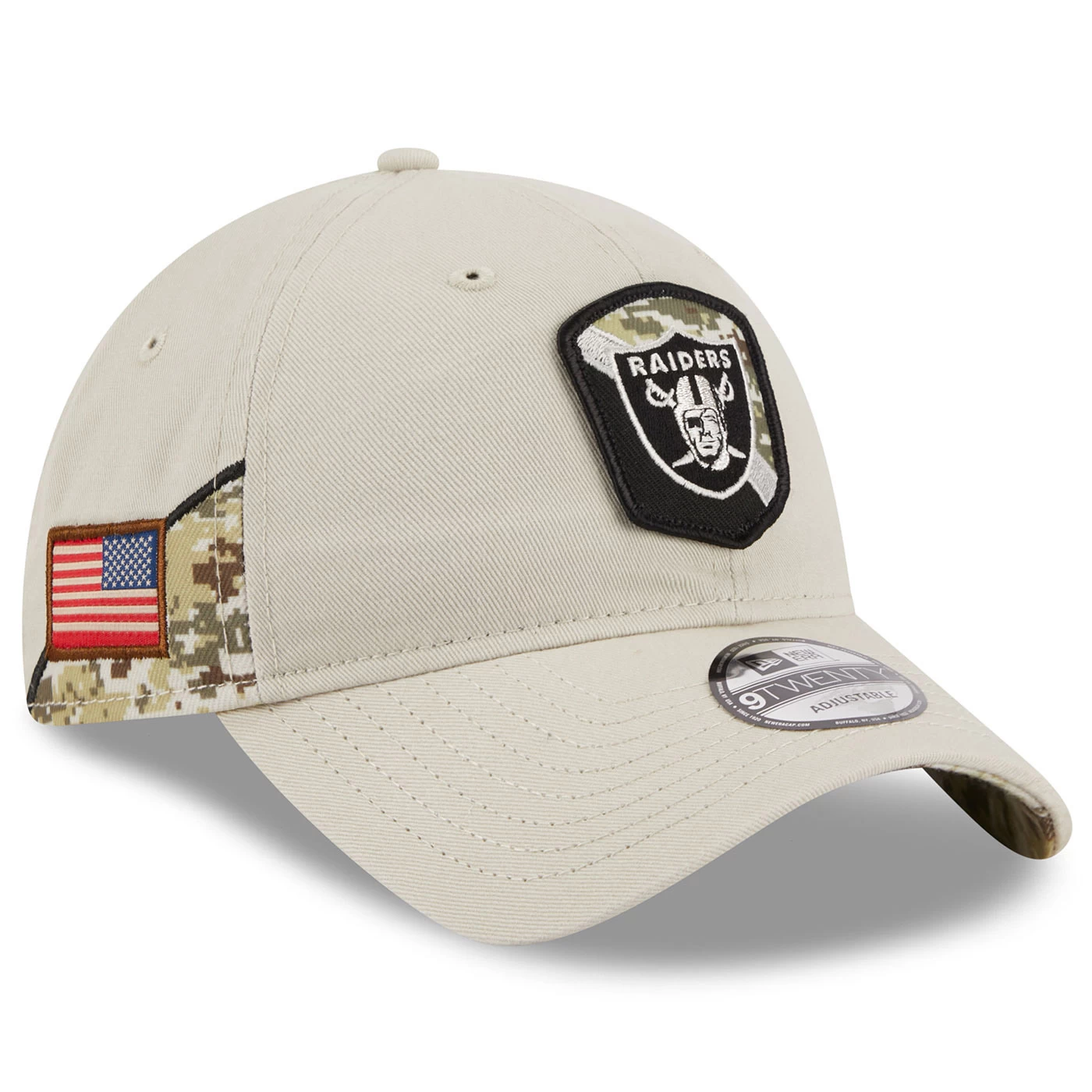 Fit to honor! Join the NFL in honoring our nation’s service members with the Raiders New Era Youth 9Twenty 2023 Salute to Service Cap. This kids’ adjustable cap features a split-color custom team shield logo patch at the front plus Digi-tech camo detailing at the right panel and on the undervisor. Additional STS official league logo embroidered at the rear and woven US flag at the right-wear side. 100% cotton.
