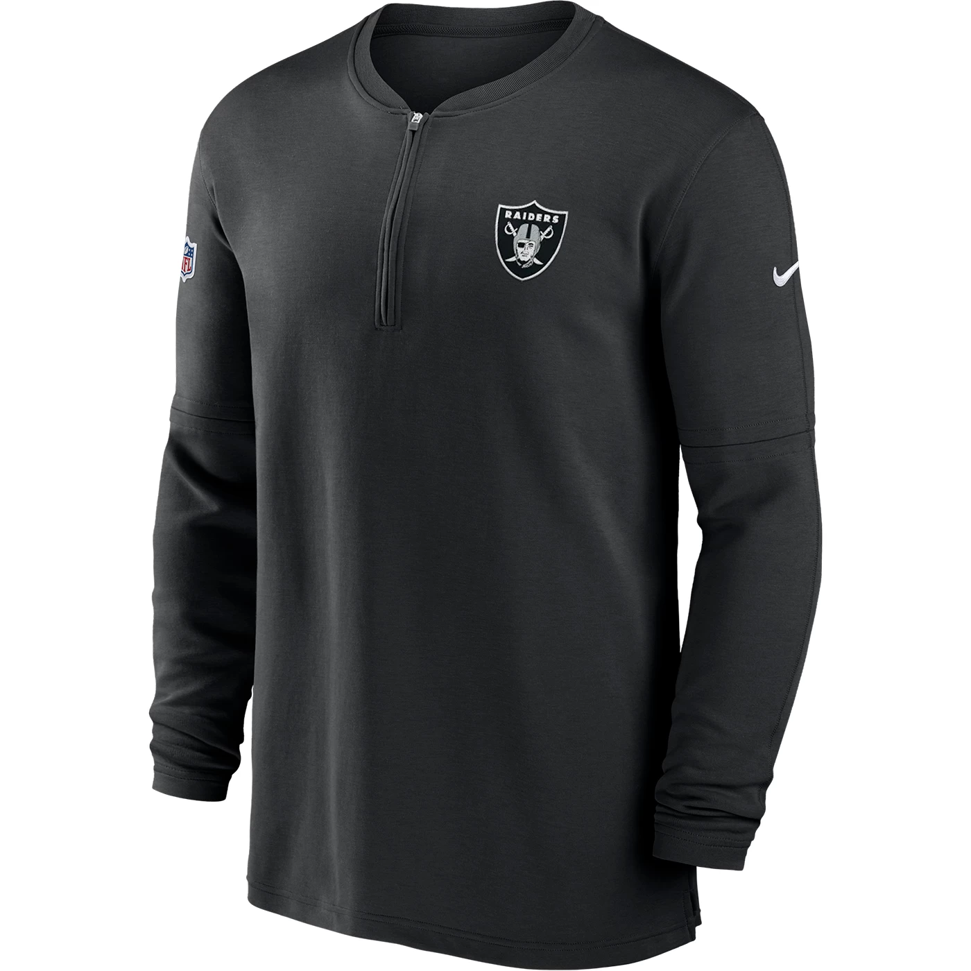 Wear what the pros wear! Made with coaches and players in mind the Raiders Nike Half Zip Long Sleeve Top is designed with double pique Dri-FIT fabrication that wicks away sweat to support your body’s natural temperature regulation. This pullover top has a modern collar removable sleeve seams and a size vent to tailor your fit and features team shield logo embroidery at the upper left chest. 78% recycled polyester 22% cotton.