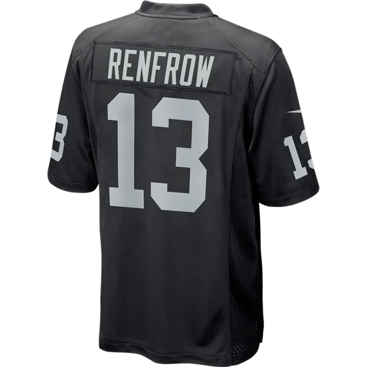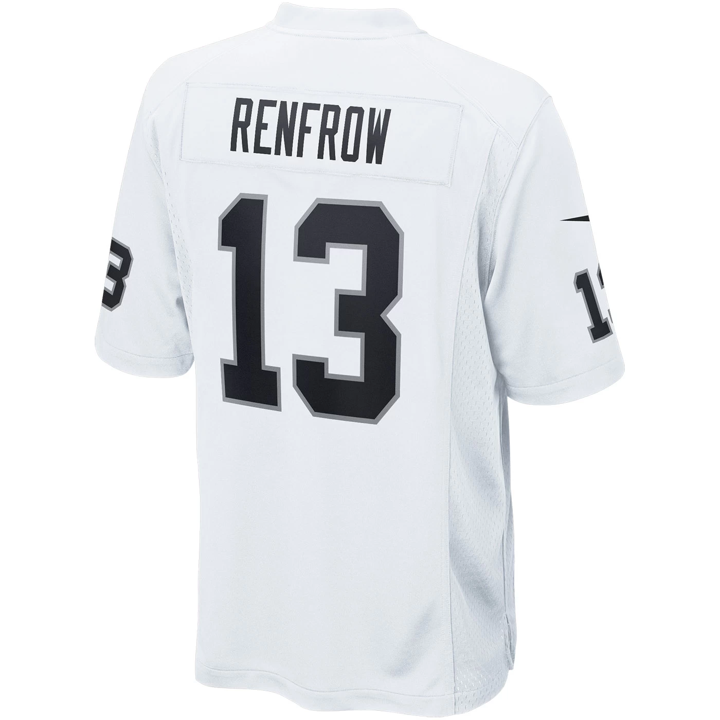 This Nike Hunter Renfrow Game Jersey is designed to a modern fit—removing excess fabric with adjusted armhole sizing as well as adjusted sleeve lengths. Each jersey has a bound clean finished neckband and heat transfer back neck label for zero distraction. It is embellished with a silicone lightweight print player name and number on the front back and sleeves. 100% recycled polyester.