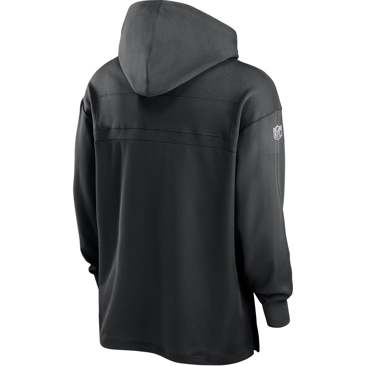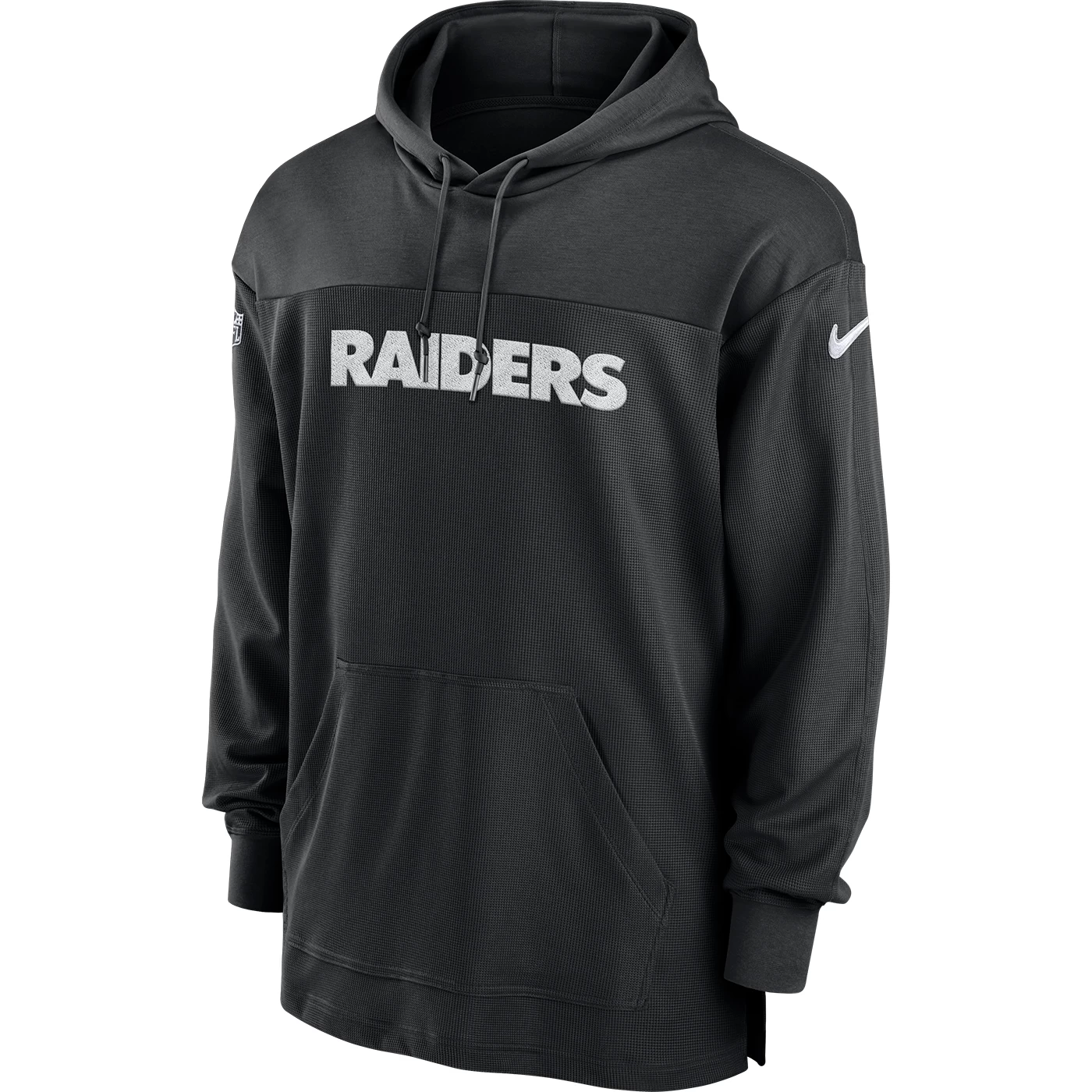 Wear what the pros wear! Made with coaches and players in mind the Raiders Nike Jersey Hood is designed with Dri-FIT double pique fabrication that is durable and warm. This hoodie has name plate detailing at the upper back and team wordmark logo print across the chest. Interior media pockets in the pouch pocket keep your essential secure. 78% recycled polyester 22% cotton.