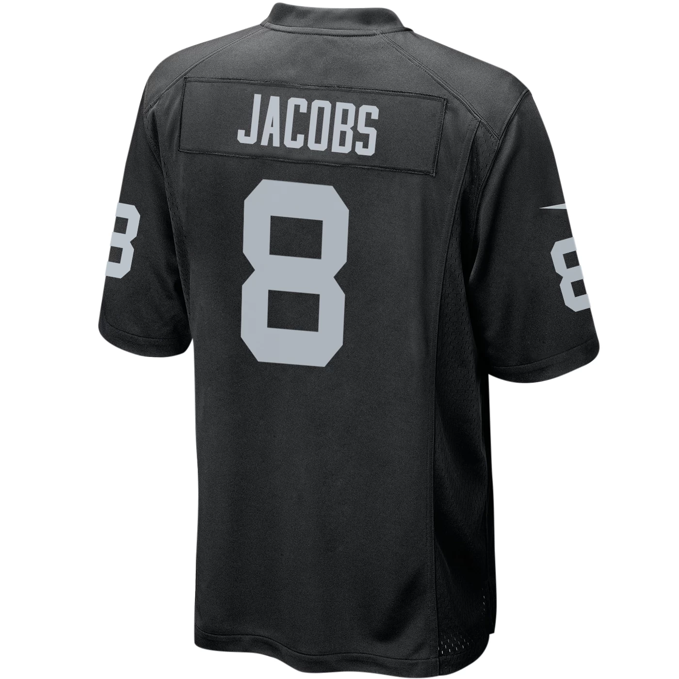 This Nike Josh Jacobs Game Jersey is designed to a modern fit—removing excess fabric with adjusted armhole sizing as well as adjusted sleeve lengths. Each jersey has a bound clean finished neckband and heat transfer back neck label for zero distraction. It is embellished with a silicone lightweight print player name and number on the front back and sleeves. 100% recycled polyester.