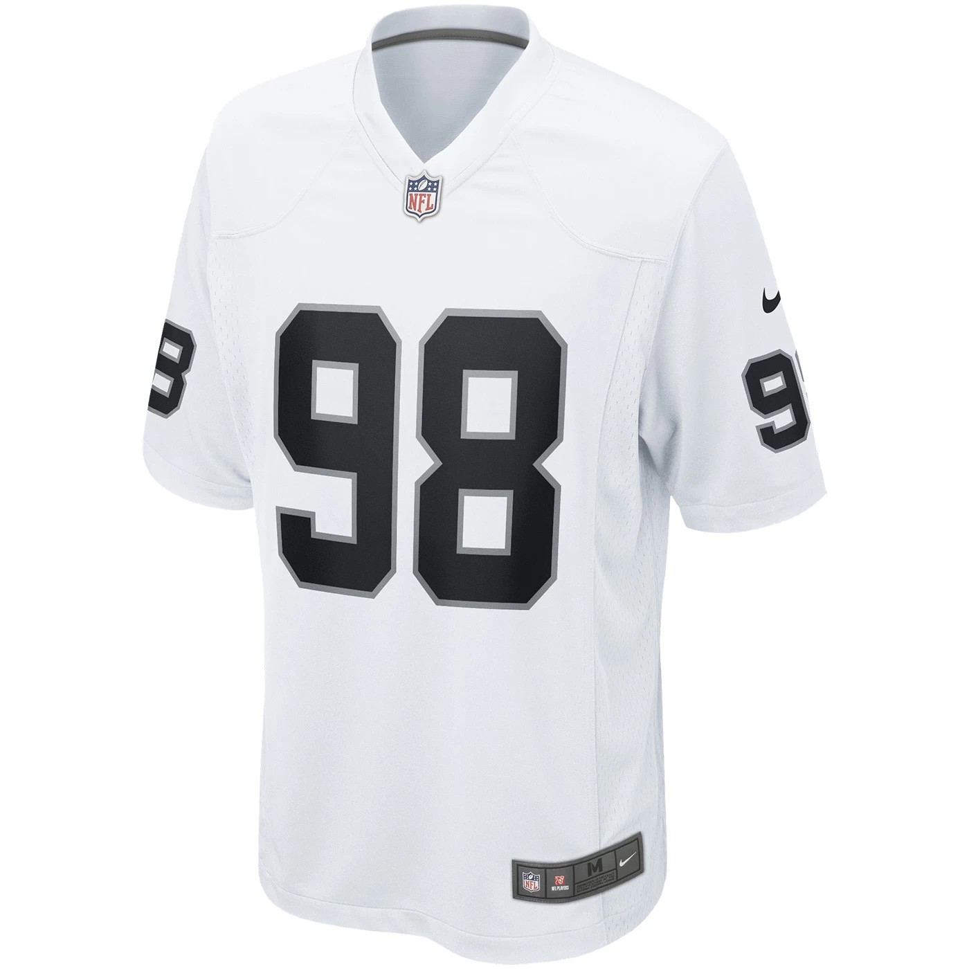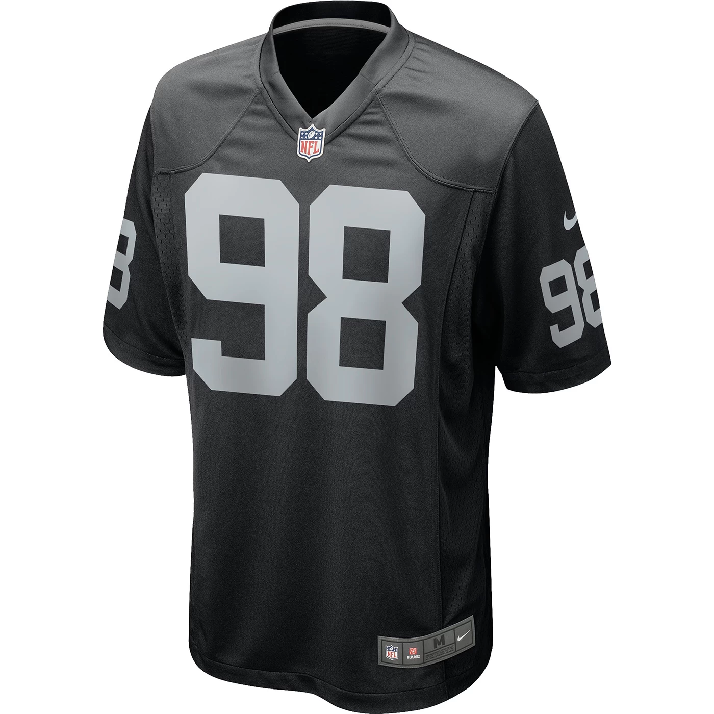 This Nike Maxx Crosby Game Jersey is designed to a modern fit—removing excess fabric with adjusted armhole sizing as well as adjusted sleeve lengths. Each jersey has a bound clean finished neckband and heat transfer back neck label for zero distraction. It is embellished with a silicone lightweight print player name and number on the front back and sleeves. 100% recycled polyester.