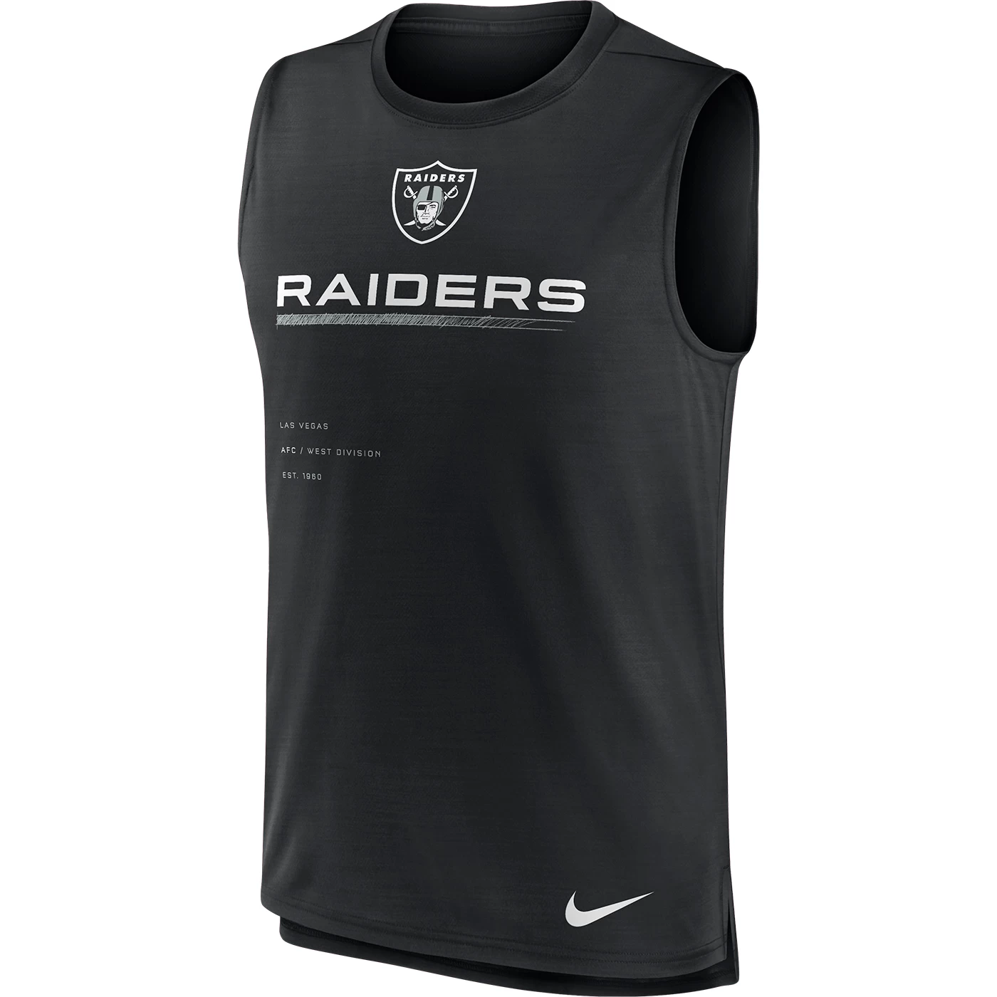 The Raiders Nike Muscle Trainer Tank is designed with breathable Dri-FIT fabrication to last you throughout your workout. This performance tank features a team shield logo and Raiders team print across the chest and body. 100% polyester.