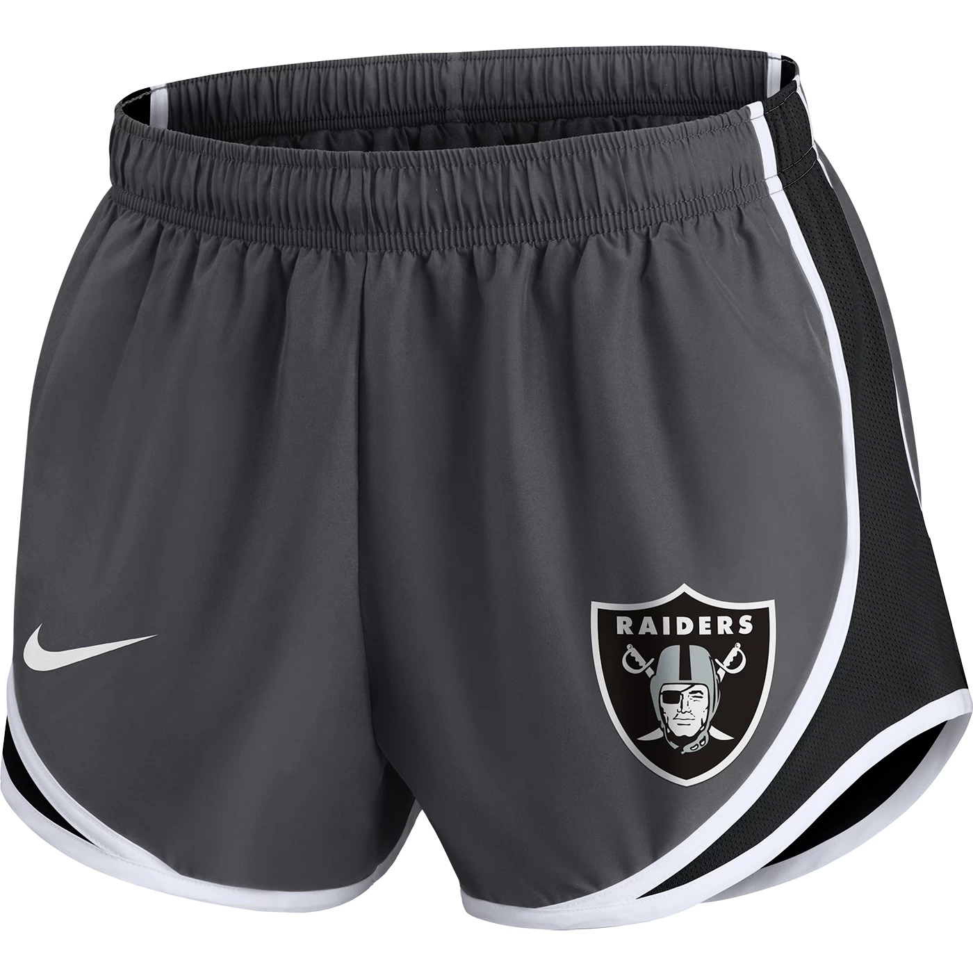 The Raiders Nike Women’s Logo Tempo Shorts are designed with an elastic waistband and lightweight Dri-FIT fabrication. These athletic shorts feature alternate team-colored stripes at the seams and a team shield logo printed at lower left leg. 100% recycled polyester.