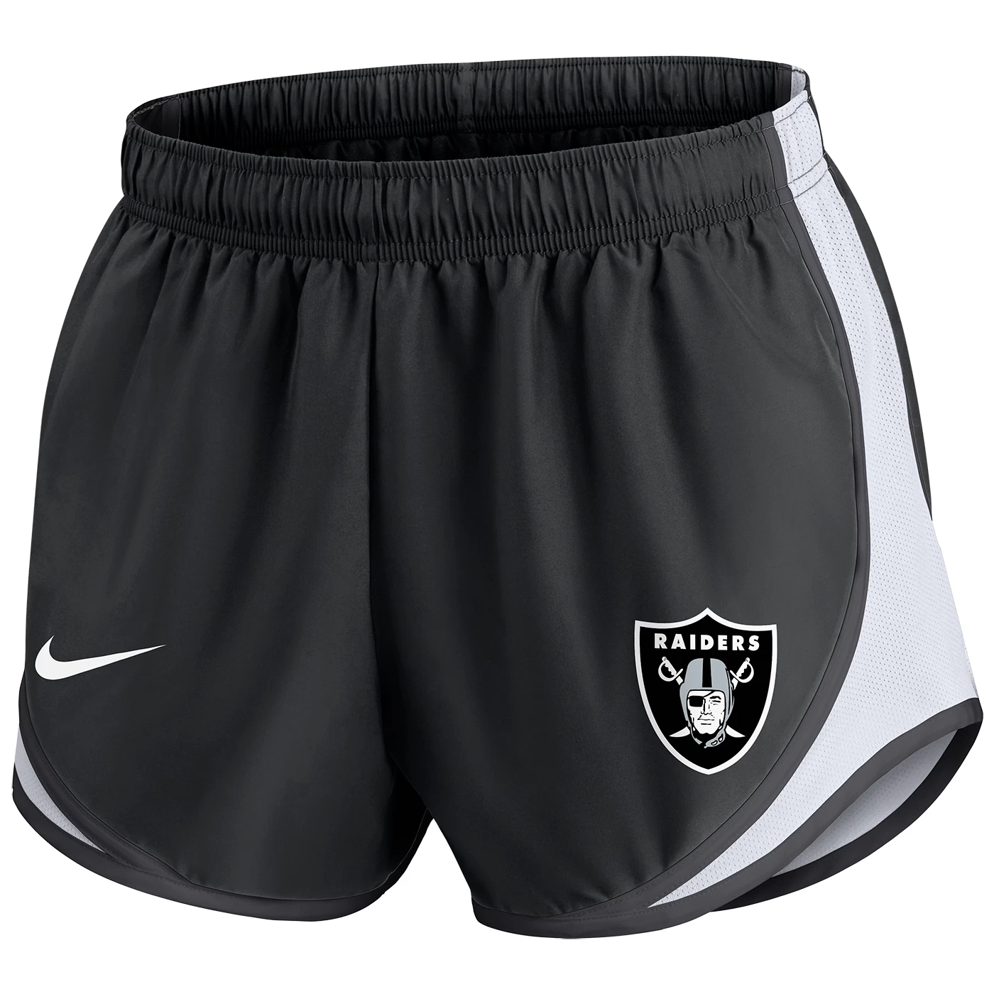 The Raiders Nike Women’s Tempo Shorts are designed with an elastic waistband and lightweight Dri-FIT fabrication. These athletic shorts feature alternate team-colored side panels and a team shield logo printed at lower left leg. 100% recycled polyester.