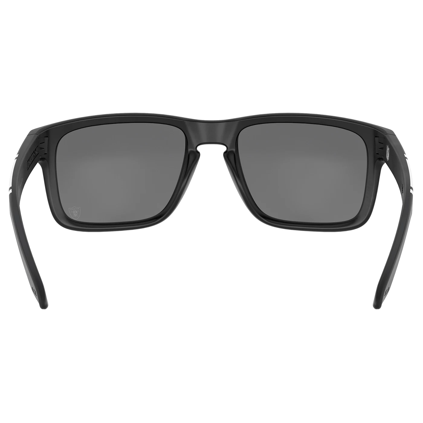 Rep Raider Nation with the Oakley Holbrook Sunglasses – a classic frame updated with bolder team colors and an official Raiders’ shield logo etch on the lens and temple. Featuring square O metal icon front rivet accents and a three-point fit that holds lenses in precise optical alignment while eliminating pressure points. 6-base Prizm™ lenses geometry enhances color contrast and detail while patented High Definition Optics® (HDO®) provides superior optical clarity and razor-sharp vision at every angle. UV protection of Plutonite® lens filters out 100% of UVA / UVB / UVC rays and harmful blue light up to 400nm while O-Matter™ stress-resistant frame material is both lightweight and durable for all-day comfort and protection. Frame: 100% nylon polymer; Lens: 100% polycarbonate.