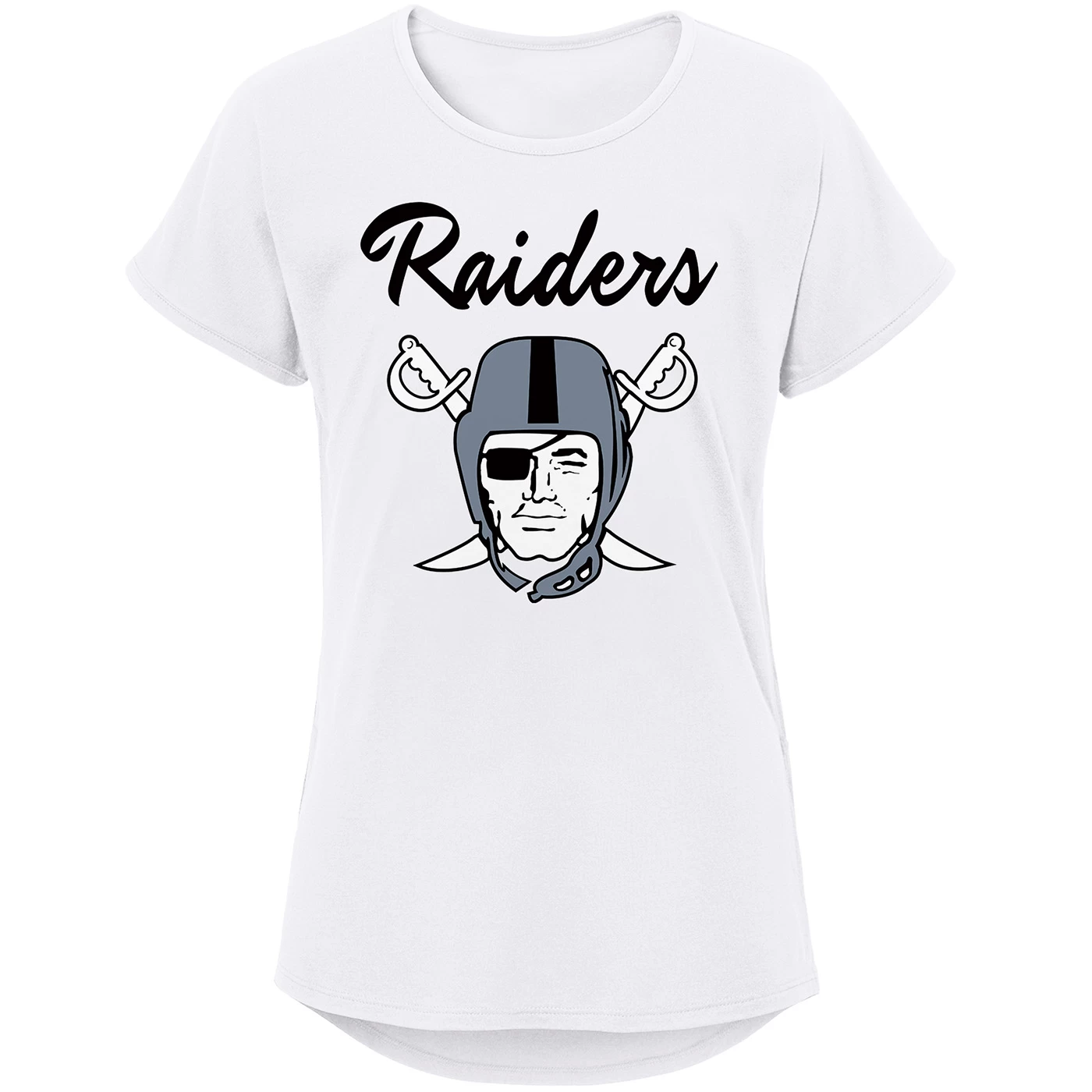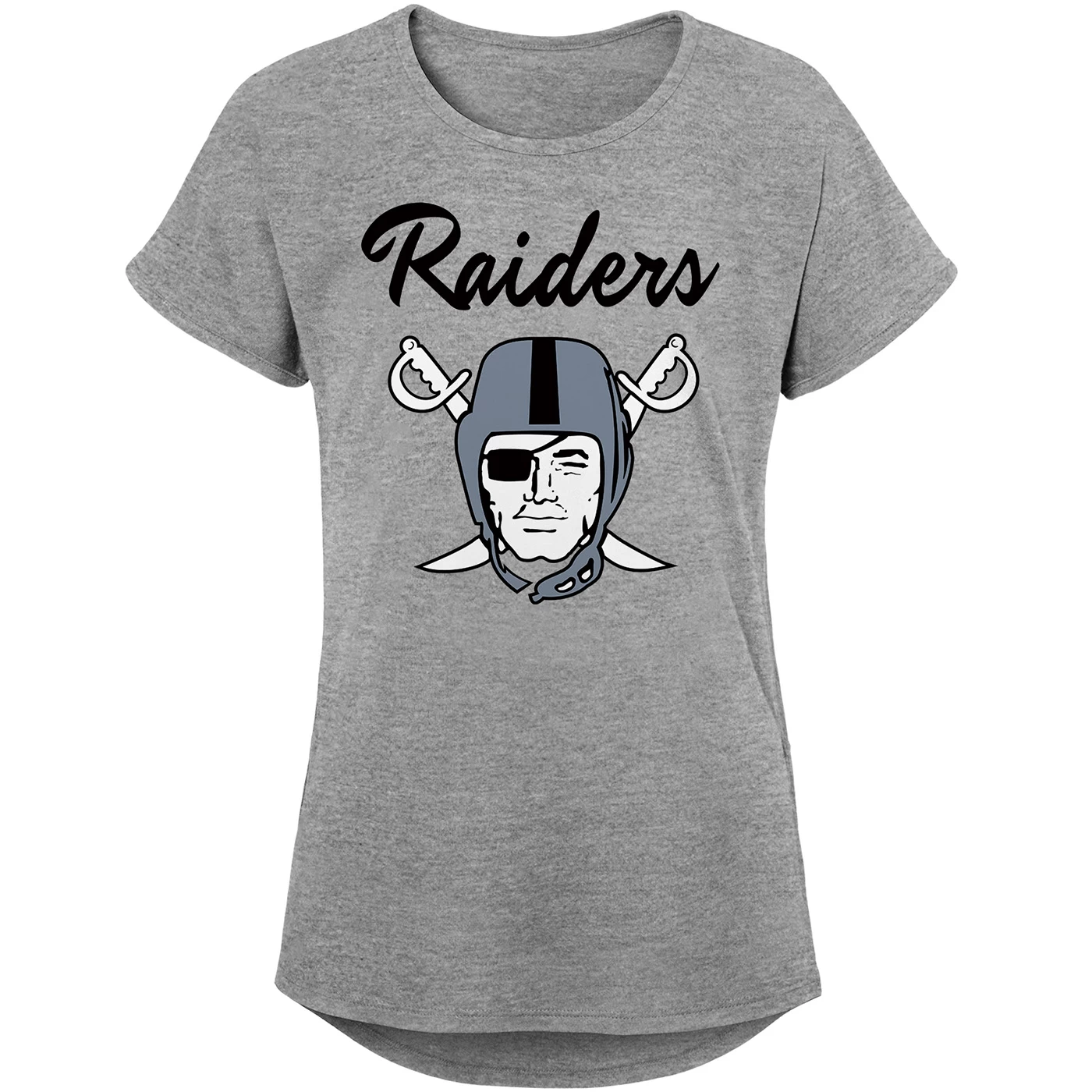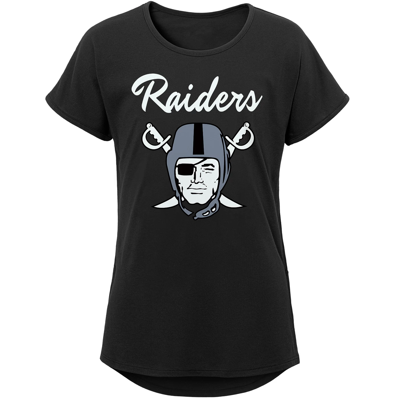 Your kid will be ready for game day with the Raiders Girls Pirate Logo Tee by Outerstuff! The short sleeve tee features our exclusive team pirate logo and “Raiders” script printed on the chest. 100% cotton.