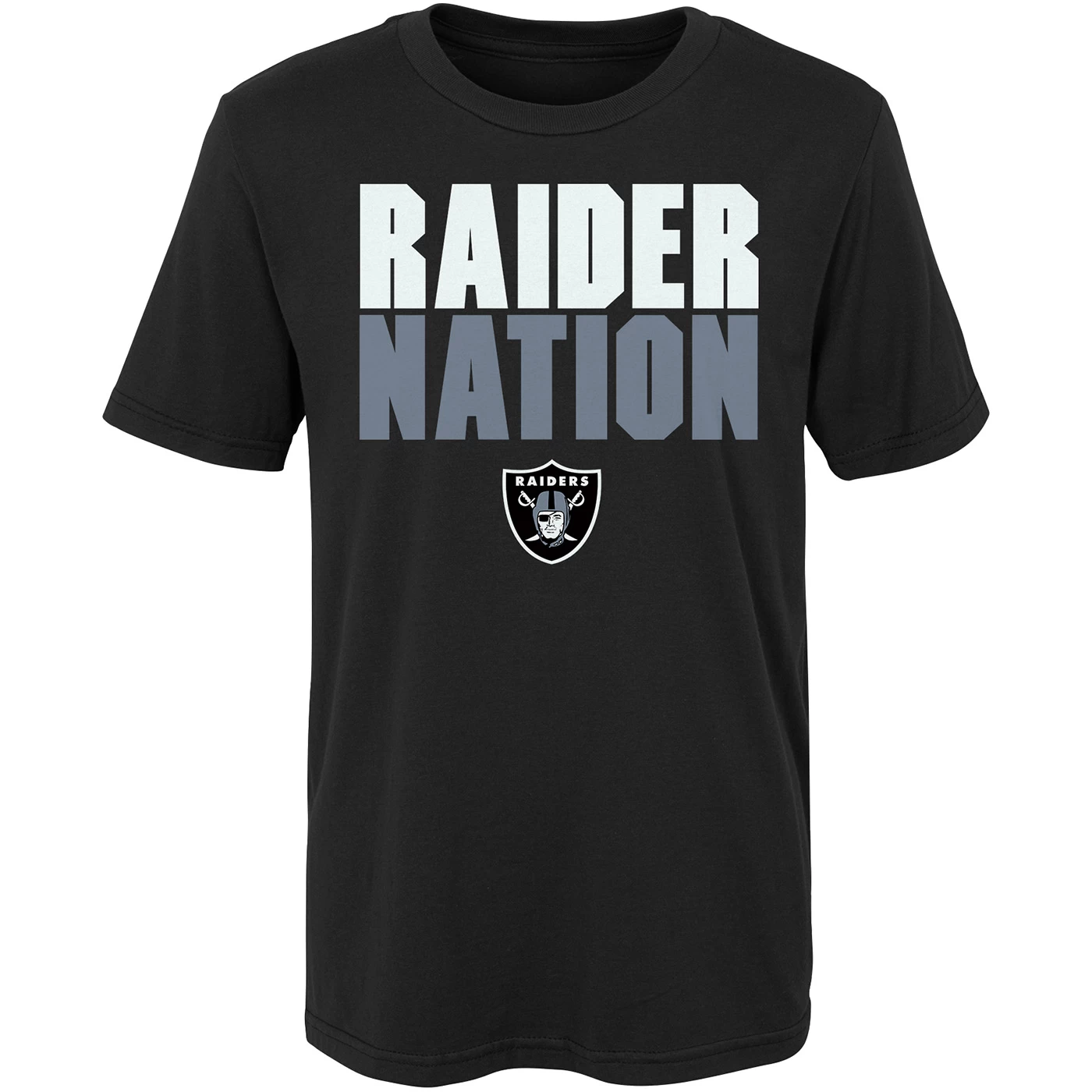 Celebrate The Nation! The Raiders Juvenile Raider Nation Tee by Outerstuff features a team shield logo and “Raider Nation” printed across the chest in alternate team colors so everyone will know where your young one’s allegiance lies. 100% cotton.