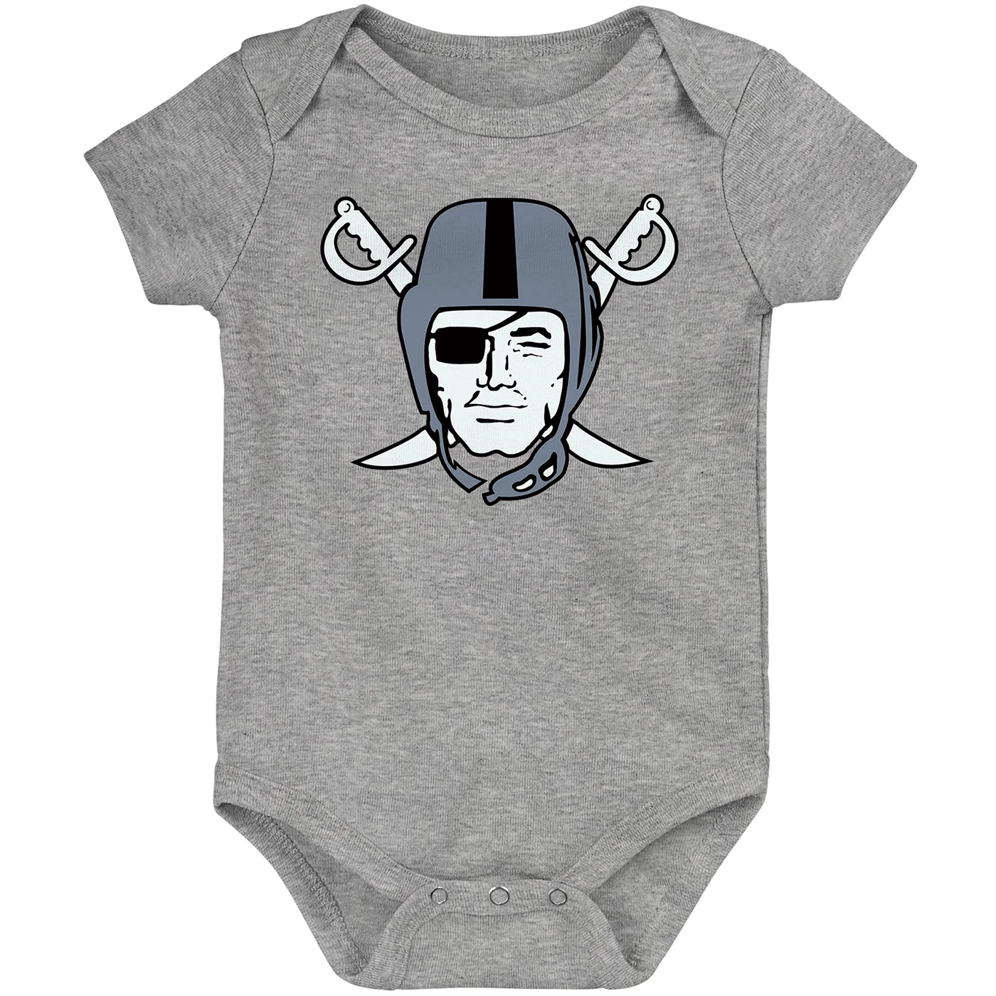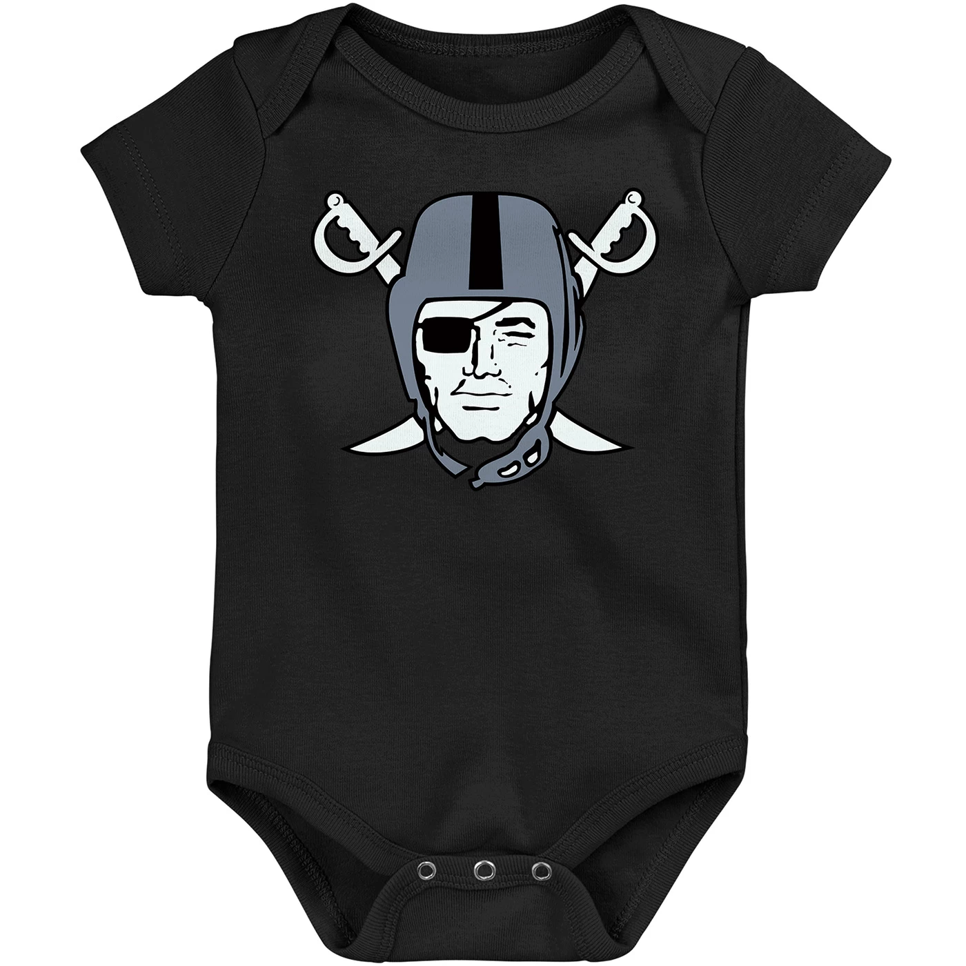Suit your little one up for game day in the Raiders Newborn Pirate Logo Onesie by Outerstuff! This short sleeve onesie has a snap crotch and features our exclusive Raiders pirate logo printed on the front. 100% soft cotton.