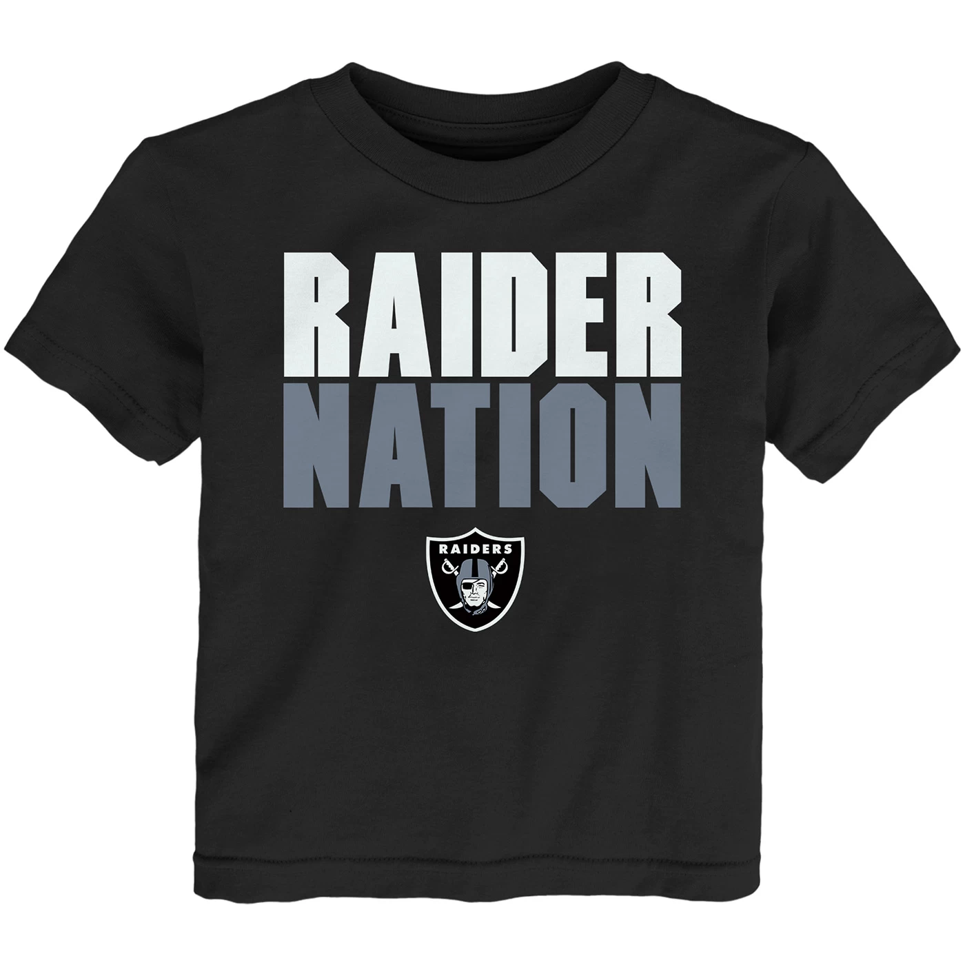 Celebrate The Nation! The Raiders Toddler Raider Nation Tee by Outerstuff features a team shield logo and “Raider Nation” printed across the chest in alternate team colors so everyone will know where your young one’s allegiance lies. 100% cotton.