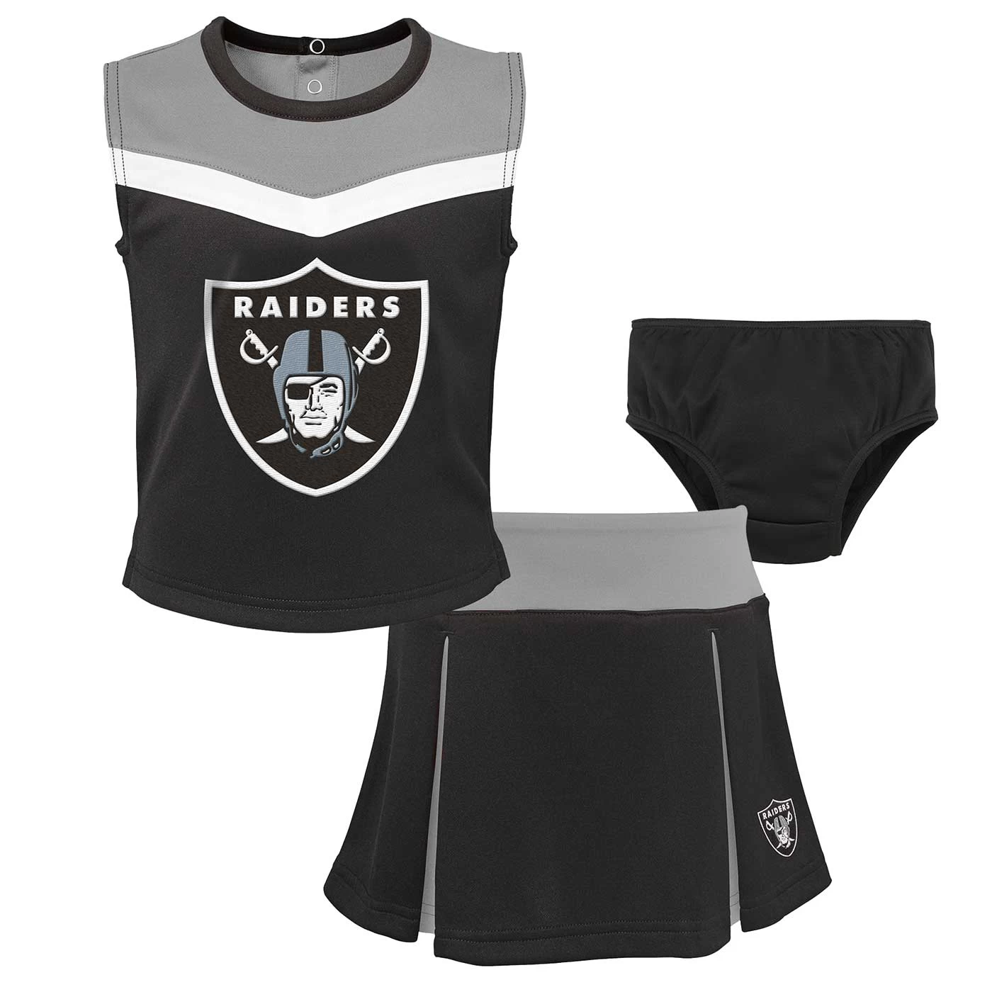The Raiders’ biggest fans can now cheer on their team in uniform with Raiders Toddler Three Piece Cheer Set by Outerstuff! This set includes a cheer top skirt and bottom piece with embroidered Raiders’ team graphics. 100% polyester.