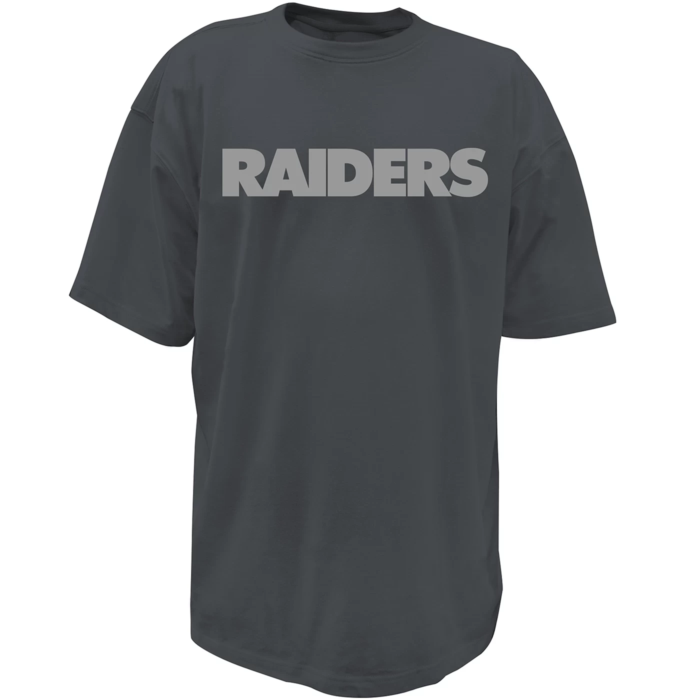 The Raiders Big & Tall Wordmark Pigment Tee is designed with washed black fabrication and features the team wordmark logo printed across the chest. Available in extended big sizing. 100% cotton.