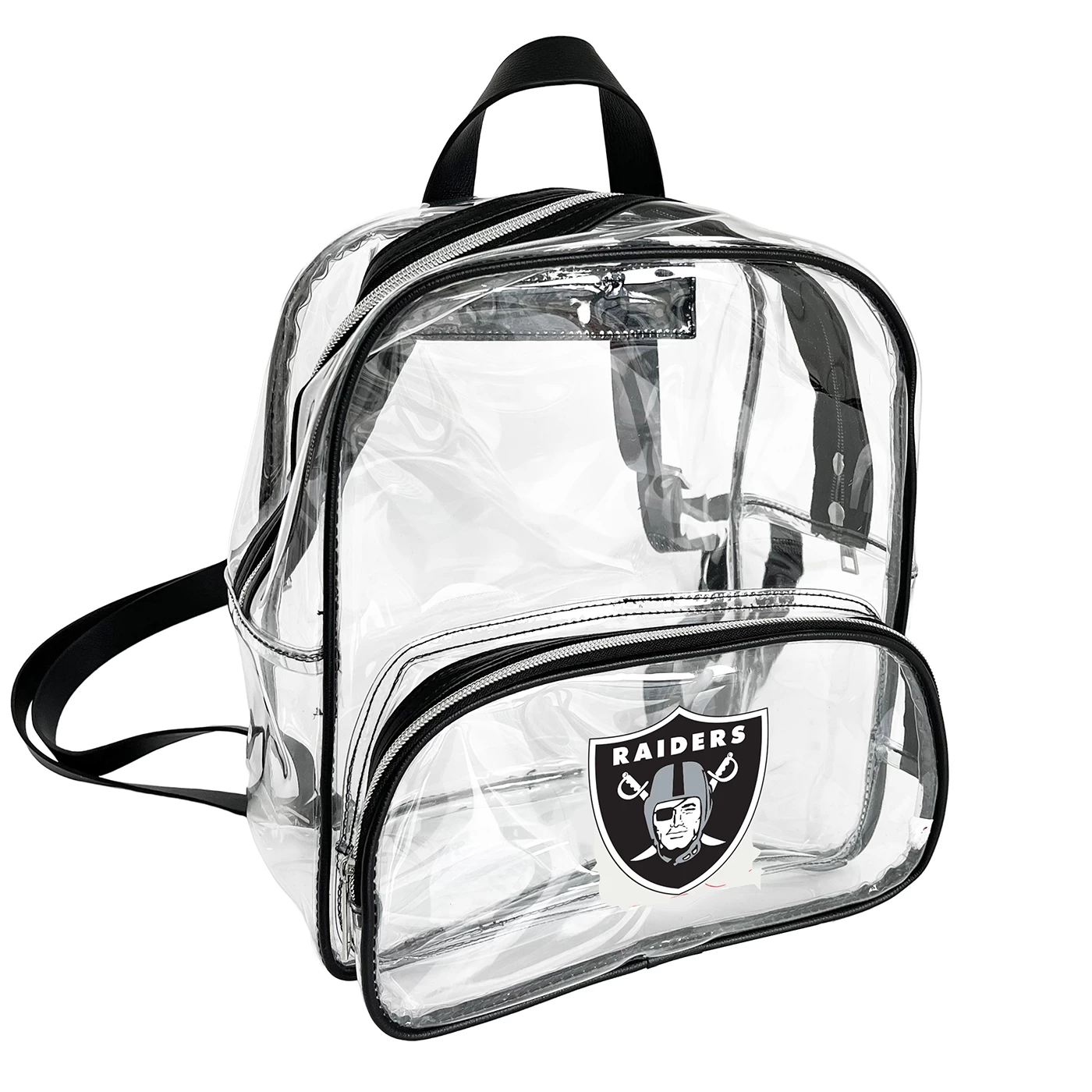 The Raiders Hype Clear Backpack by Logo Brands allows for a convenient and hands-free game day! This bag is made with see-through durable plastic and has two zippered compartments to hold all of your essentials. Features a bold team shield logo so you can arrive to the Raiders game in style.
