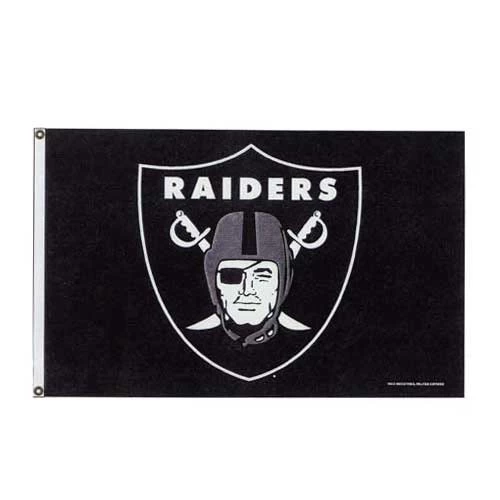 Raise your Raider pride up high with the Raiders Shield Logo Flag—featuring a screen printed Raiders’ shield logo and two metal grommets to attach onto any flag pole! Measures approximately 3 x 5.
