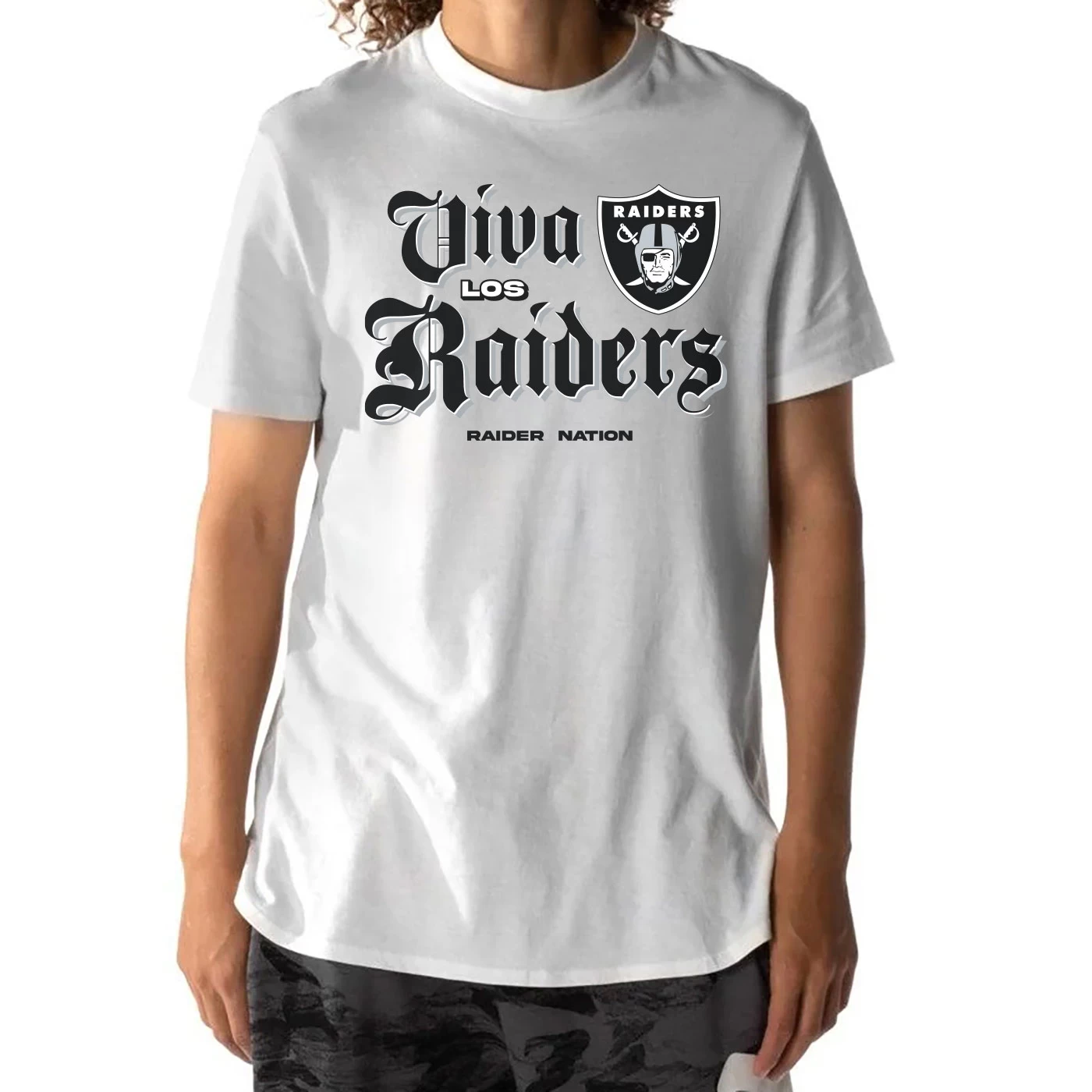 Celebrate Latino Heritage with our exclusive design! This super soft Viva los Raiders Tee by The Wild Collective features a team shield logo and “Viva los Raiders” in Old English print across the chest. 100% cotton.