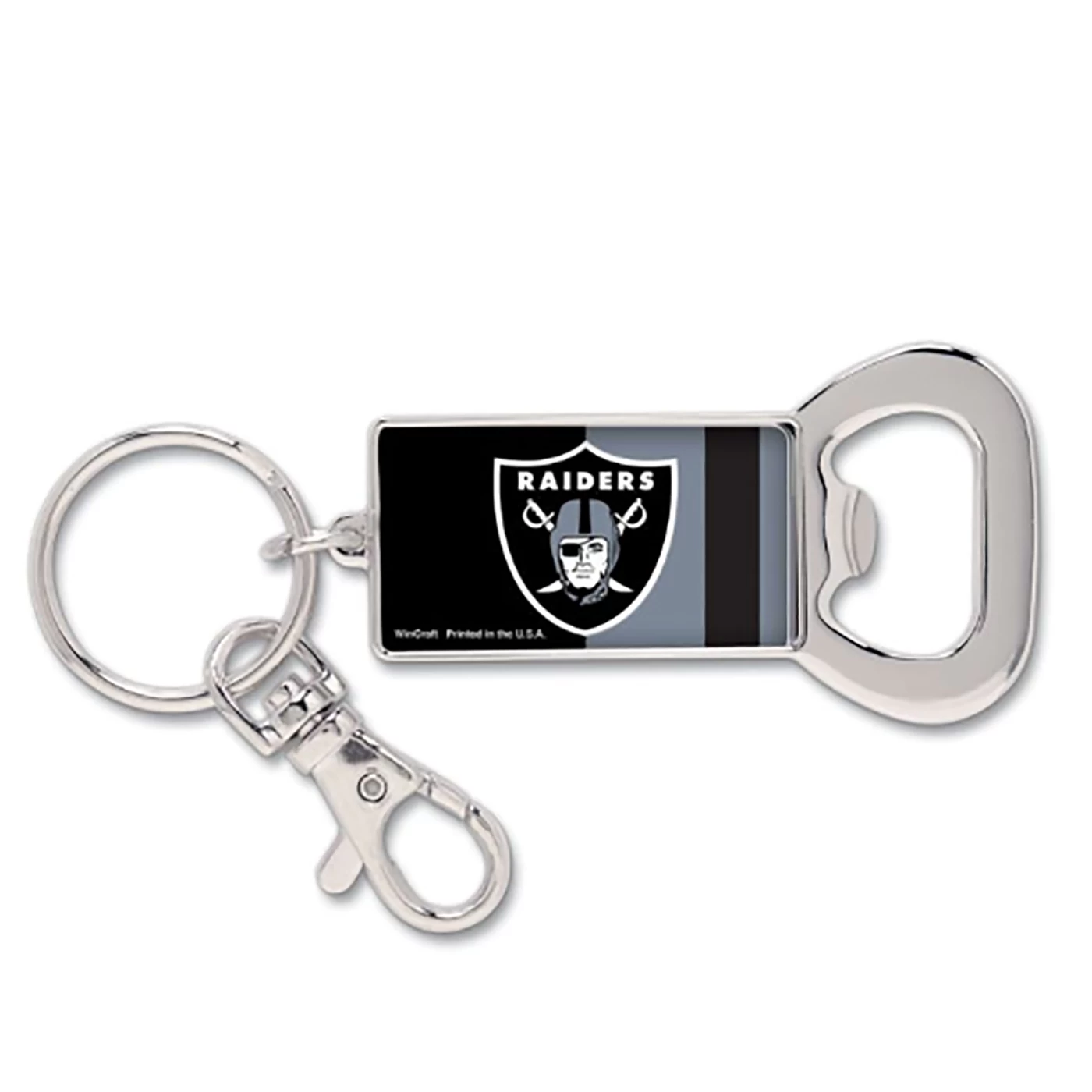 Show off your team pride at any tailgate party or occasion! The Raiders Rectangle Bottle Opener Key Ring by Wincraft is decorated with the team-colored stripes and a team shield logo. Measures approximately 4″ in length.